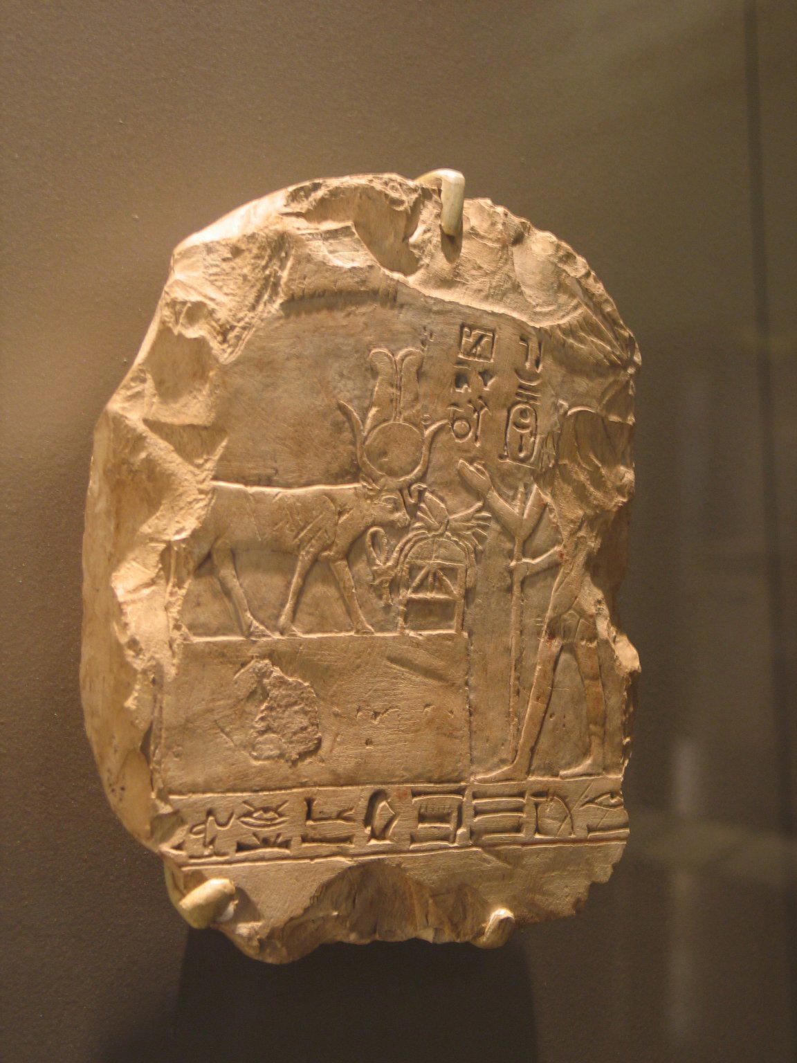 Stela of a Priest of Amun Named An, ca. 1426–1390 B.C.E.. Limestone, pigment, 7 11/16 x 5 7/8 x 1 7/8 in. (19.5 x 14.9 x 4.7 cm). Brooklyn Museum, Gift of Evangeline Wilbour Blashfield, Theodora Wilbour, and Victor Wilbour honoring the wishes of their mother, Charlotte Beebe Wilbour, as a memorial to their father, Charles Edwin Wilbour, 16.92. (Photo: Brooklyn Museum)