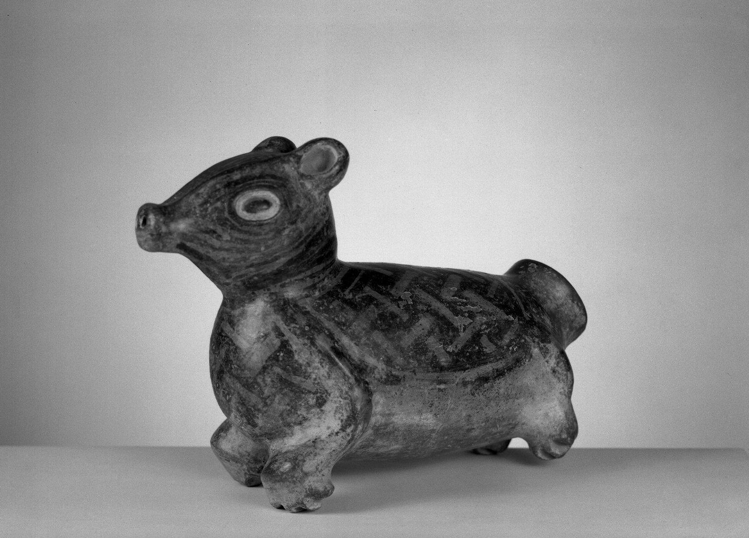 Peccary Effigy Vessel, 800–1200. Ceramic, pigment, 7 1/2 x 4 1/4 x 11 in. (19.1 x 10.8 x 27.9 cm). Brooklyn Museum, Gift of Mrs. Minor C. Keith in memory of her husband, 31.1685. (Photo: Brooklyn Museum)