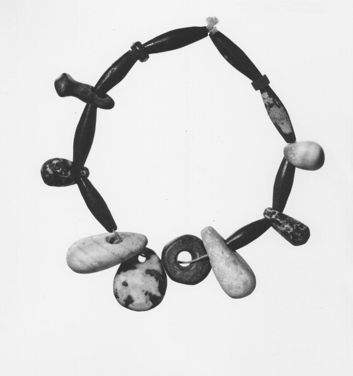 Necklace of Stone Beads, ca. 3500–3300 B.C.E.. Steatite, carnelian, diorite, porphyry, hematite, Egyptian alabaster, agate, soapstone , 2 1/2 x 2 1/4 in. (6.4 x 5.7 cm). Brooklyn Museum, Charles Edwin Wilbour Fund, 09.889.301a. (Photo: Brooklyn Museum)
