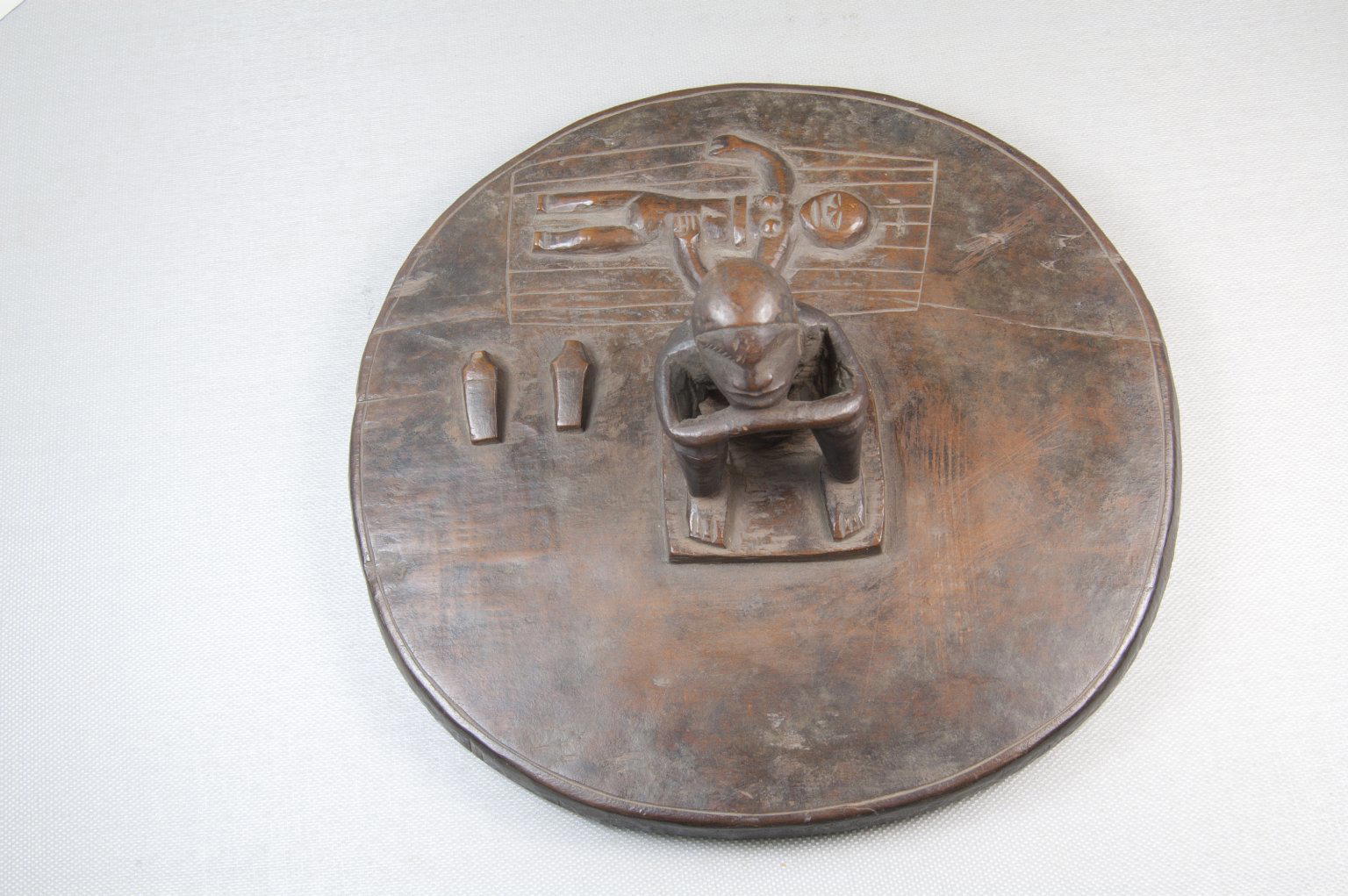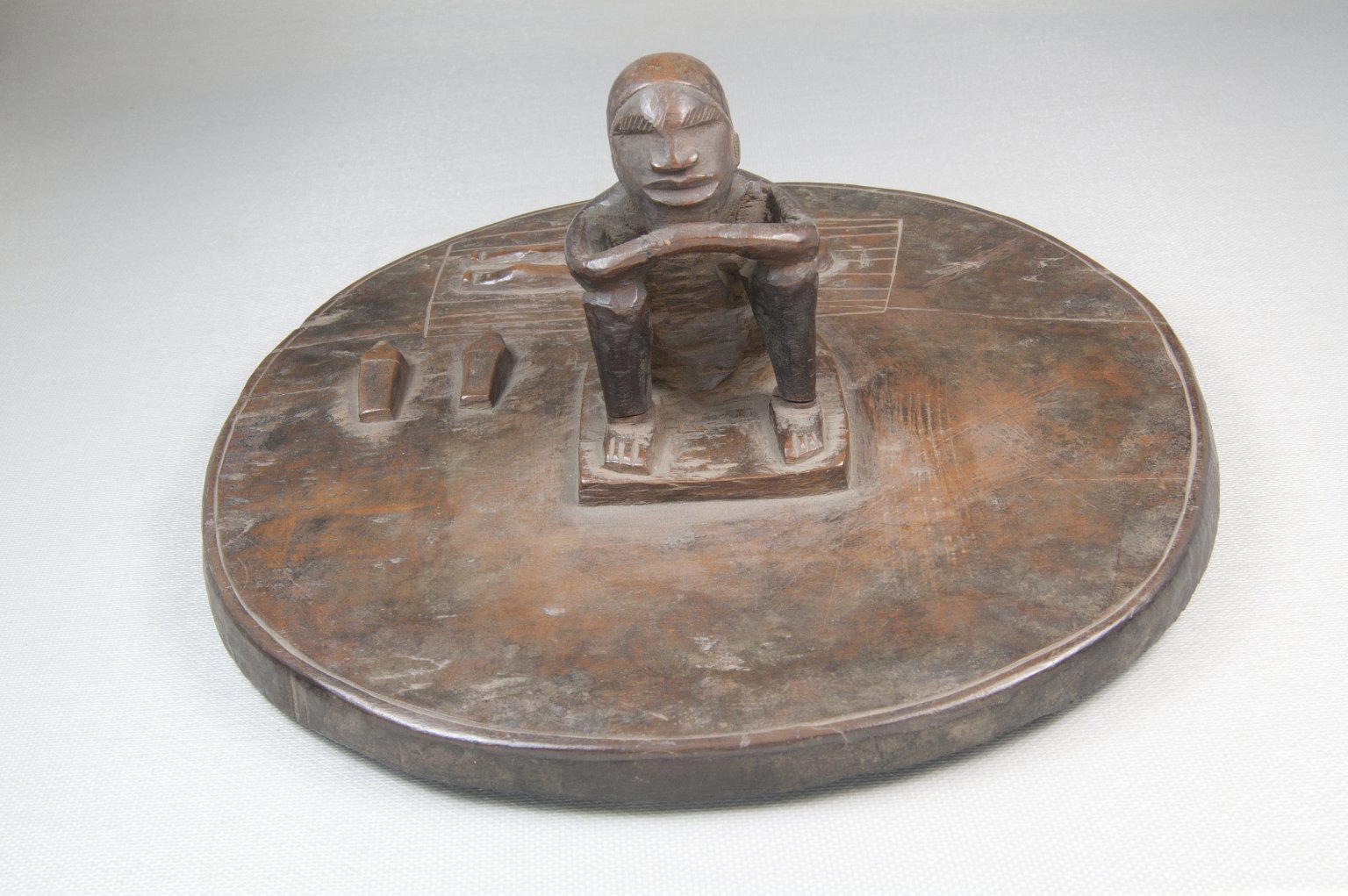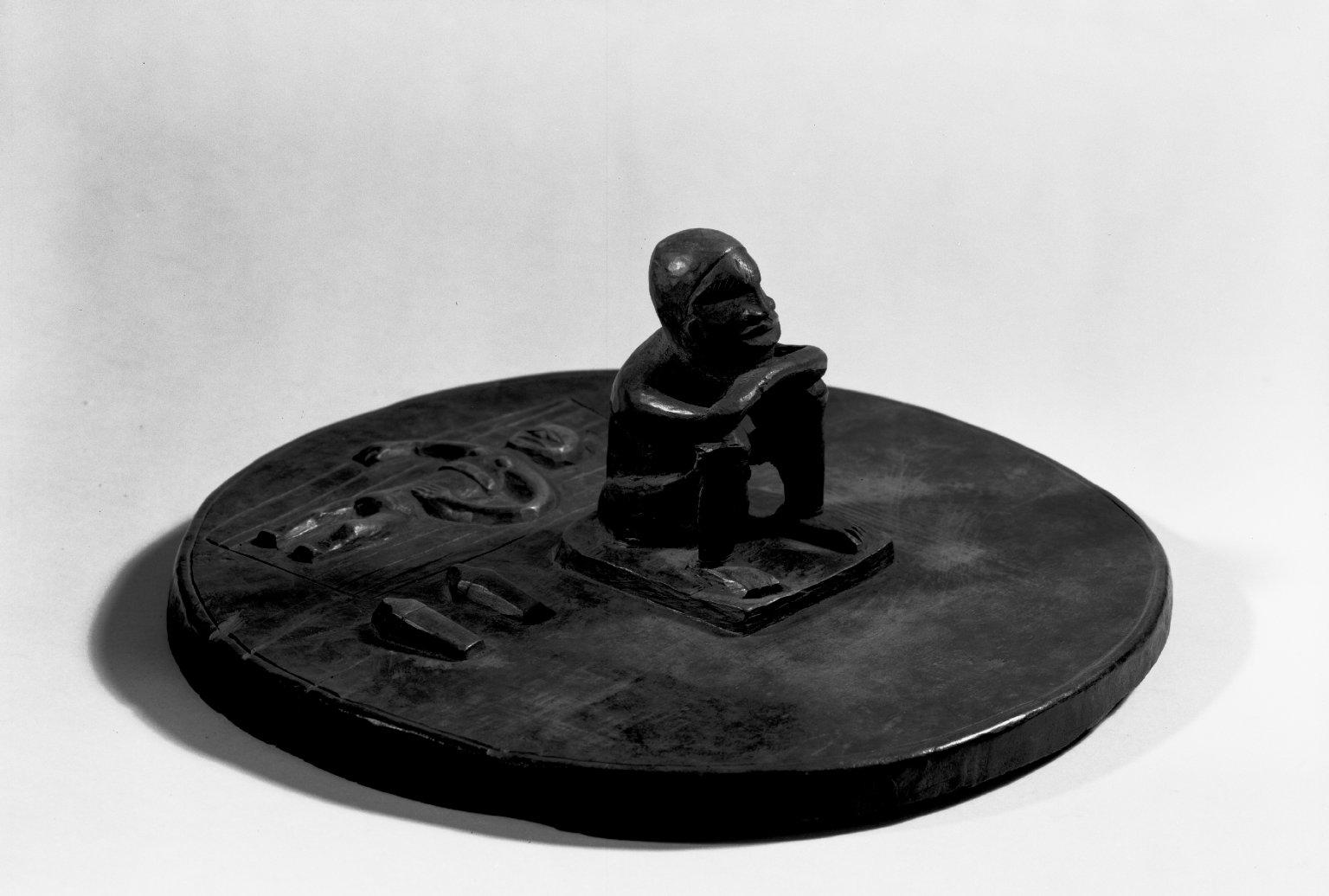 Woyo. Pot Lid with Seated Male Figure (Taampha), 19th or early 20th century. Wood, stain, 3 1/2 x 8 x 8 in. (8.9 x 20.3 x 20.3 cm). Brooklyn Museum, Museum Expedition 1922, Robert B. Woodward Memorial Fund, 22.1115. (Photo: Brooklyn Museum)