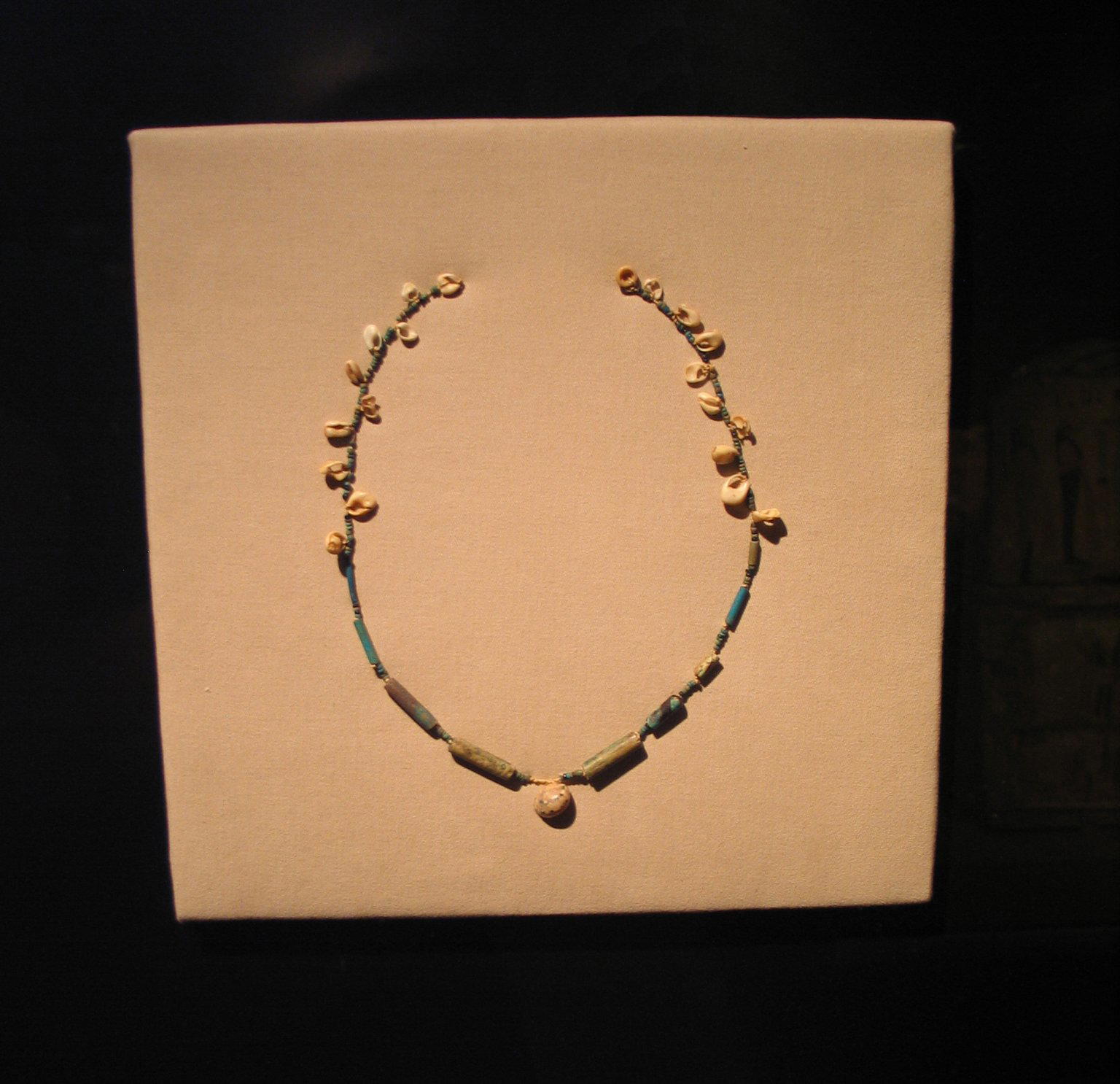 Necklaces that include shells are known from earliest times. They may have been purely decorative, or perhaps they had some unknown meaning for the Egyptians. But royal women had nerita-shell-shaped amulets made from gold.