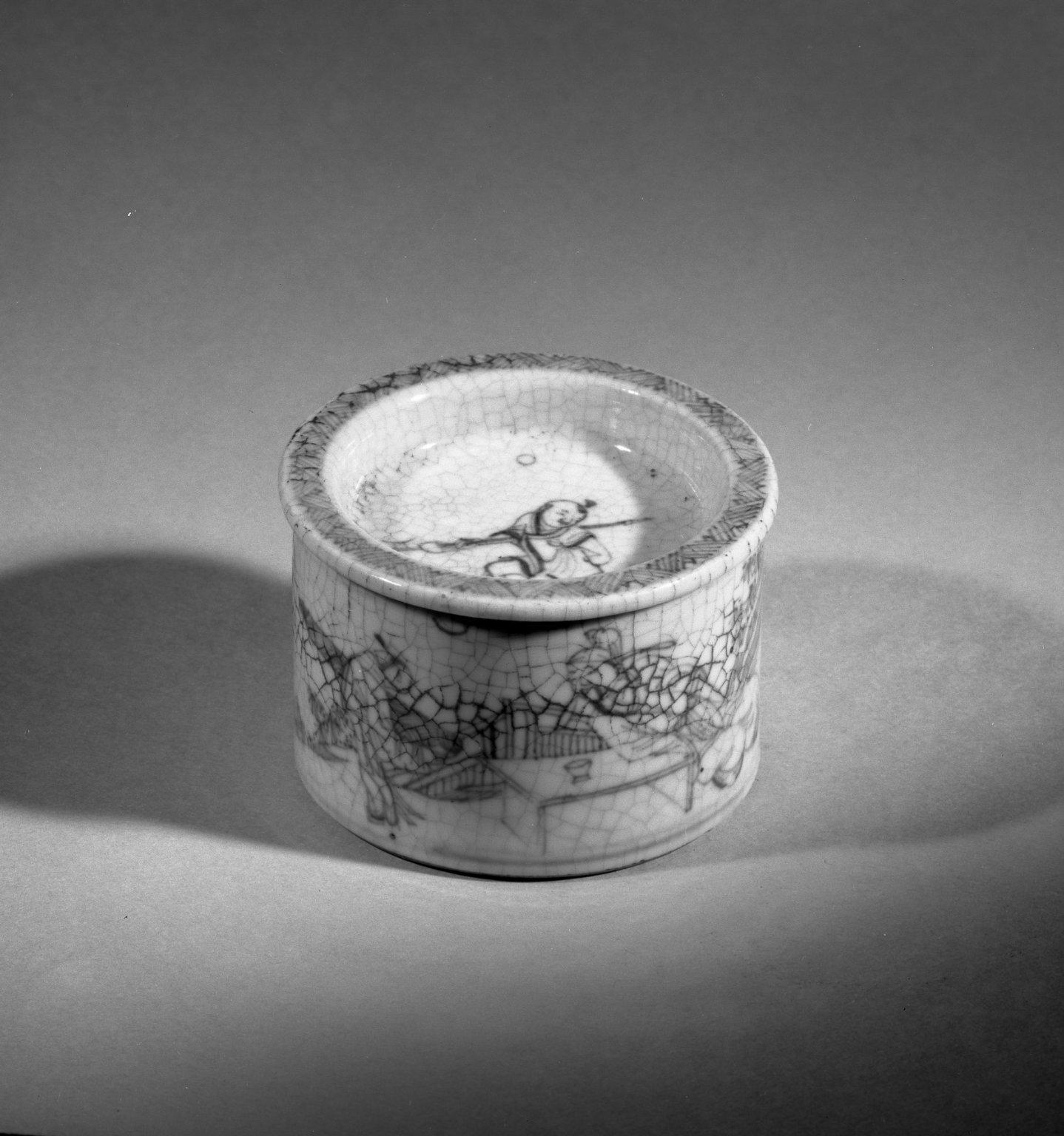 Box and Cover, 1662–1722. Porcelain, blue underglaze, 1 15/16 x 2 9/16 in. (5 x 6.5 cm). Brooklyn Museum, Gift of the executors of the Estate of Colonel Michael Friedsam, 32.1008. (Photo: Brooklyn Museum)