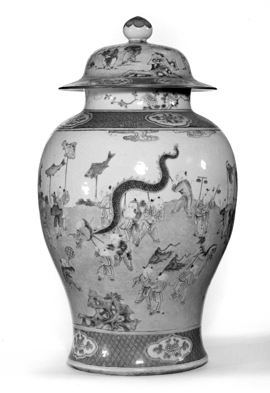 Jar with Cover, One of Pair, late 18th century. Porcelain with famille rose decoration, 19 5/16 x 10 13/16 in. (49 x 27.5 cm). Brooklyn Museum, Gift of the executors of the Estate of Colonel Michael Friedsam, 32.1125.2a-b.