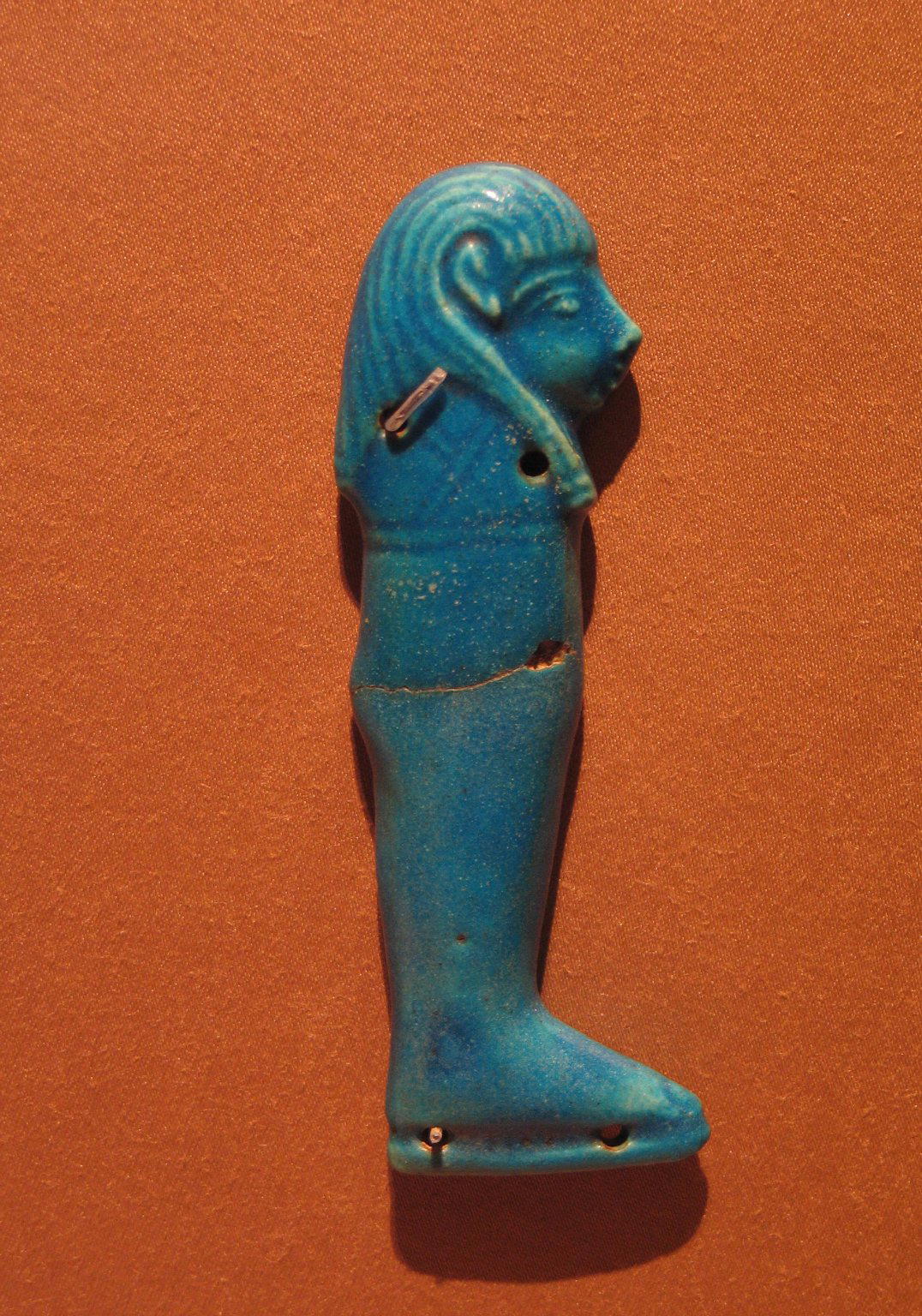 These little figures are made out if an interesting material called faience that holds on to color really well. Faience starts as a paste that is molded into shapes like these. Then, a glaze is put on, made by adding copper to quartz and other minerals. That's the blue part. Finally, it's put into a really hot kiln and everything fuses together and become very hard. It lasts a really long time!