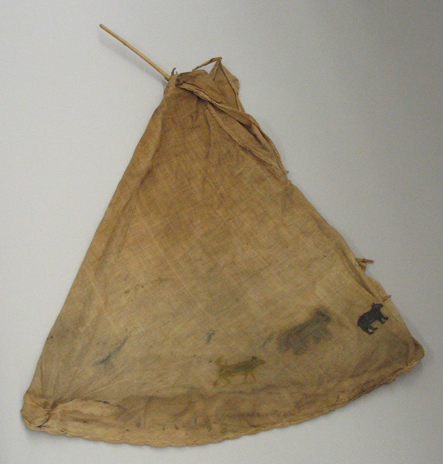Blackfoot. Toy Tipi with Pole, early 20th century. Wood, fabric, pigment. Brooklyn Museum, Bequest of W.S. Morton Mead, 32.2099.32553. (Photo: Brooklyn Museum)