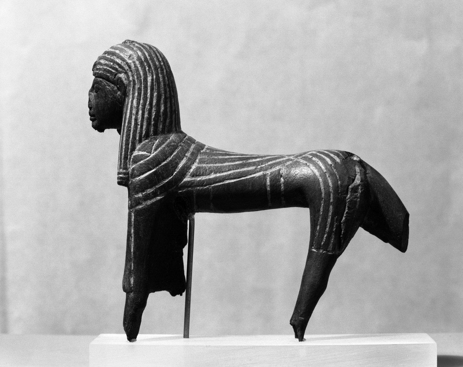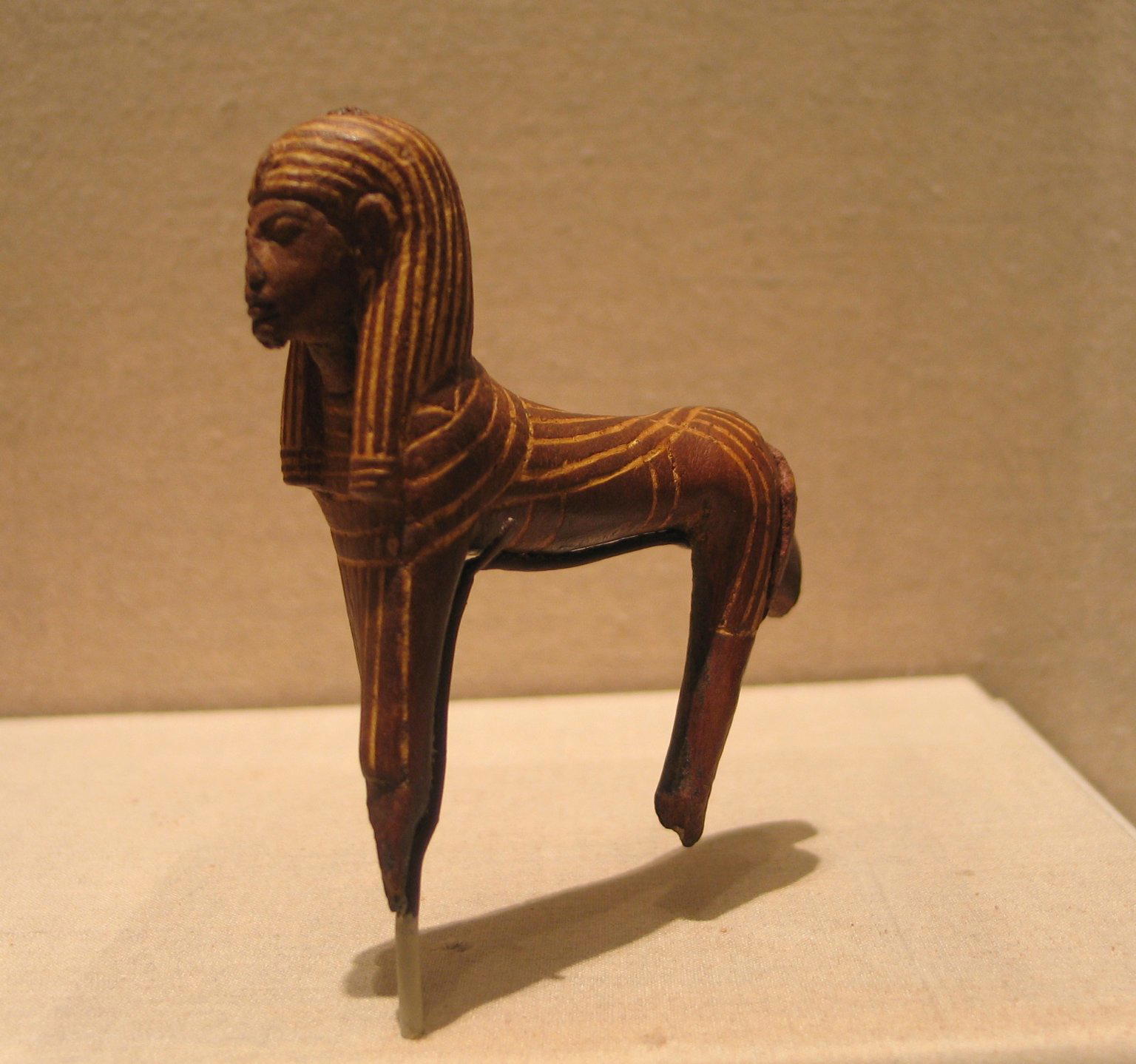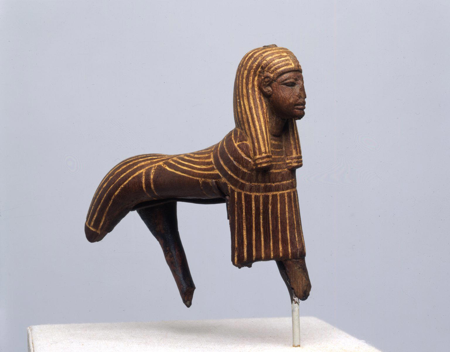 King as Winged Sphinx, ca. 1352–1336 B.C.E.. Wood, pigment, 3 1/2 x 3 11/16 in. (8.9 x 9.4 cm). Brooklyn Museum, Charles Edwin Wilbour Fund, 56.100. (Photo: Brooklyn Museum)
