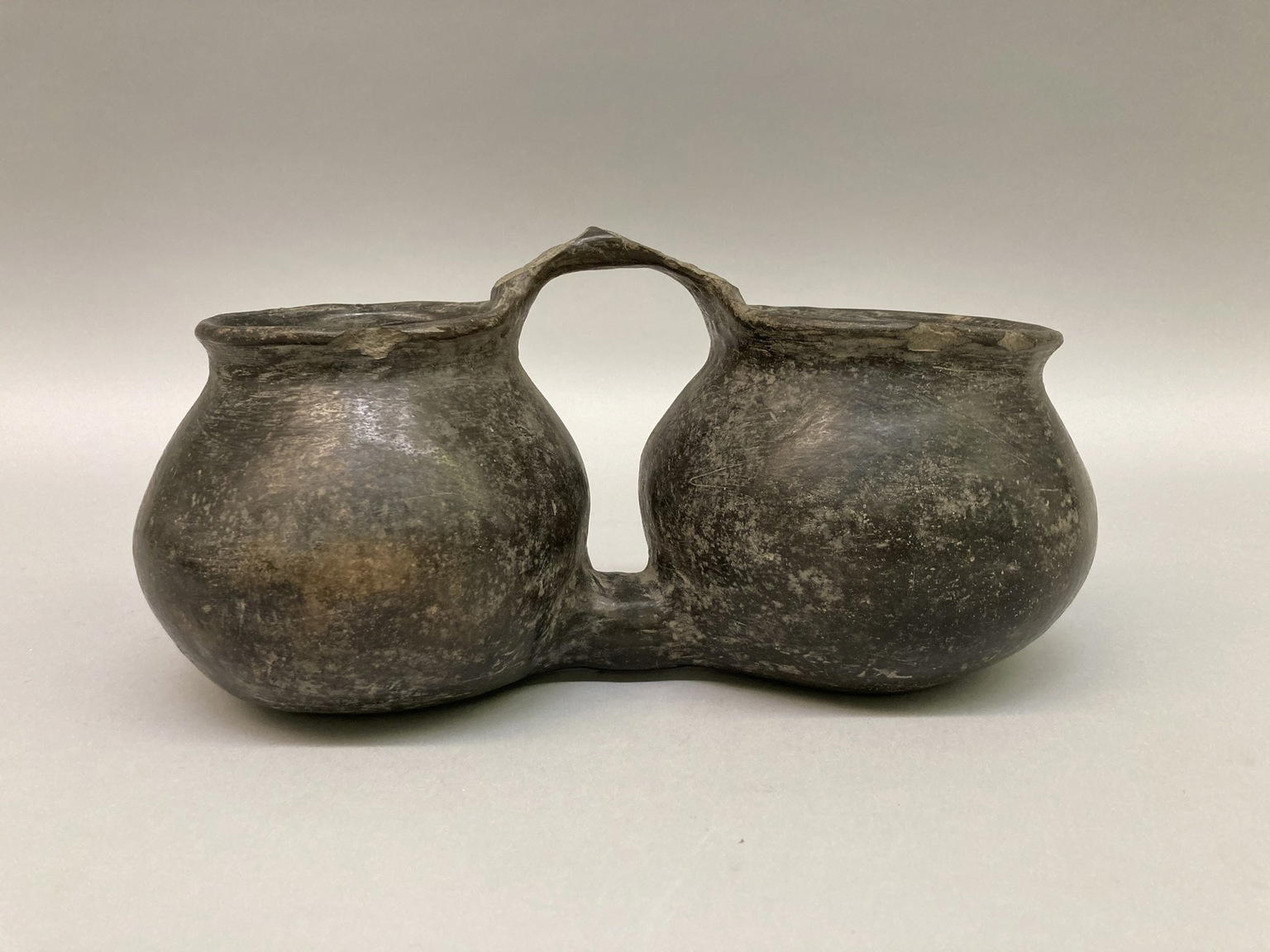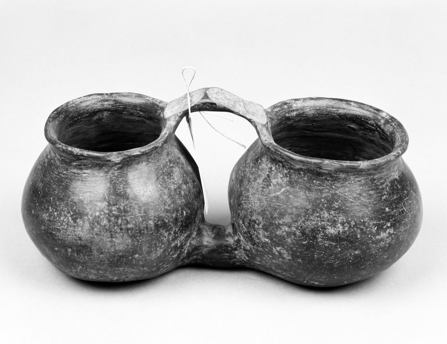 Southwest (unidentified). Blackware Double Jar with handle, Ceramic, 5 × 10 3/4 × 5 1/2 in. (12.7 × 27.3 × 14 cm). Brooklyn Museum, Brooklyn Museum Collection, 34.596. (Photo: Brooklyn Museum)