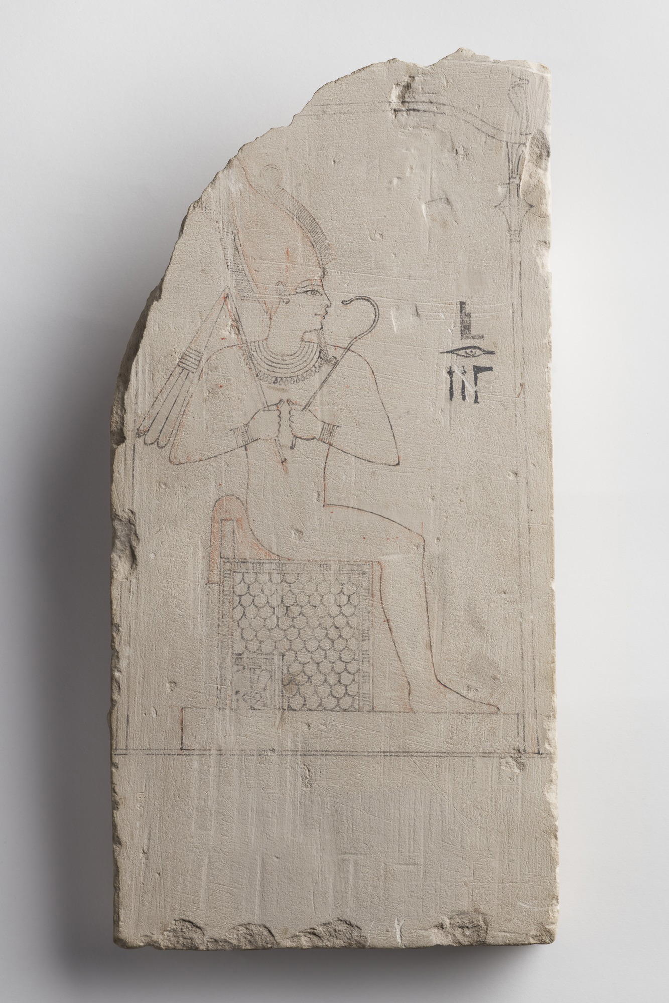 Sketch of Osiris, 305–30 B.C.E.. Limestone, pigment, 15 x 7 1/2 x 3 9/16 in. (38.1 x 19 x 9 cm). Brooklyn Museum, Charles Edwin Wilbour Fund, 37.52E. (Photo: Brooklyn Museum)