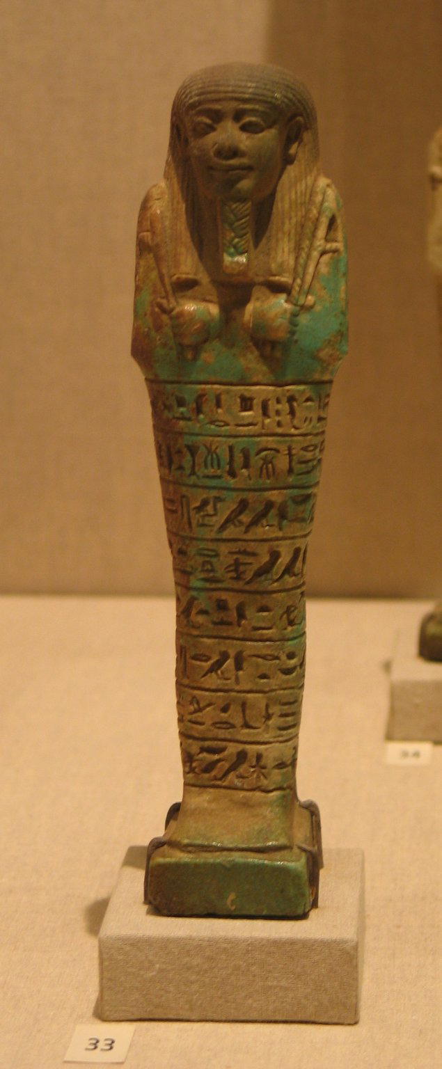 These figurines were inscribed to the person they were buried with and were thought to come to life in order to help with chores, especially agricultural tasks.They came in a wide range of qualities, from customized and individualized (the most expensive) to mold made and mass produced.