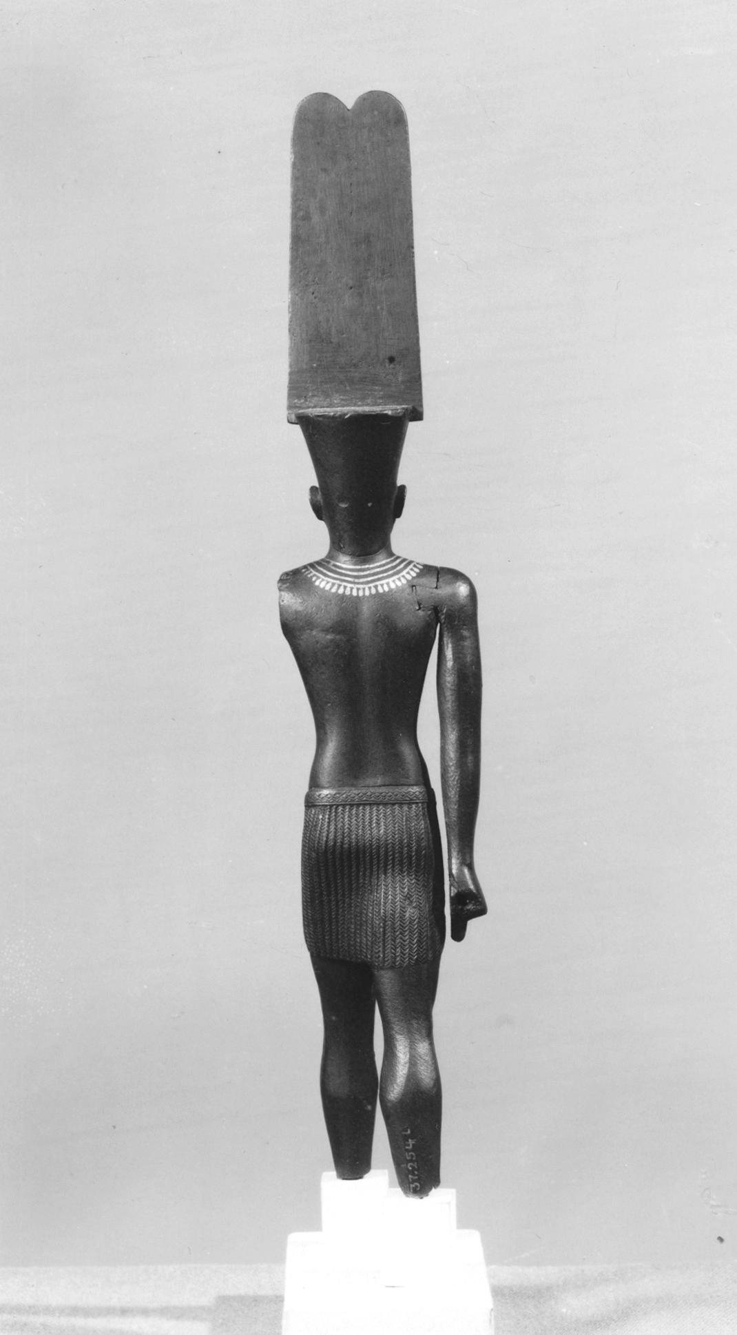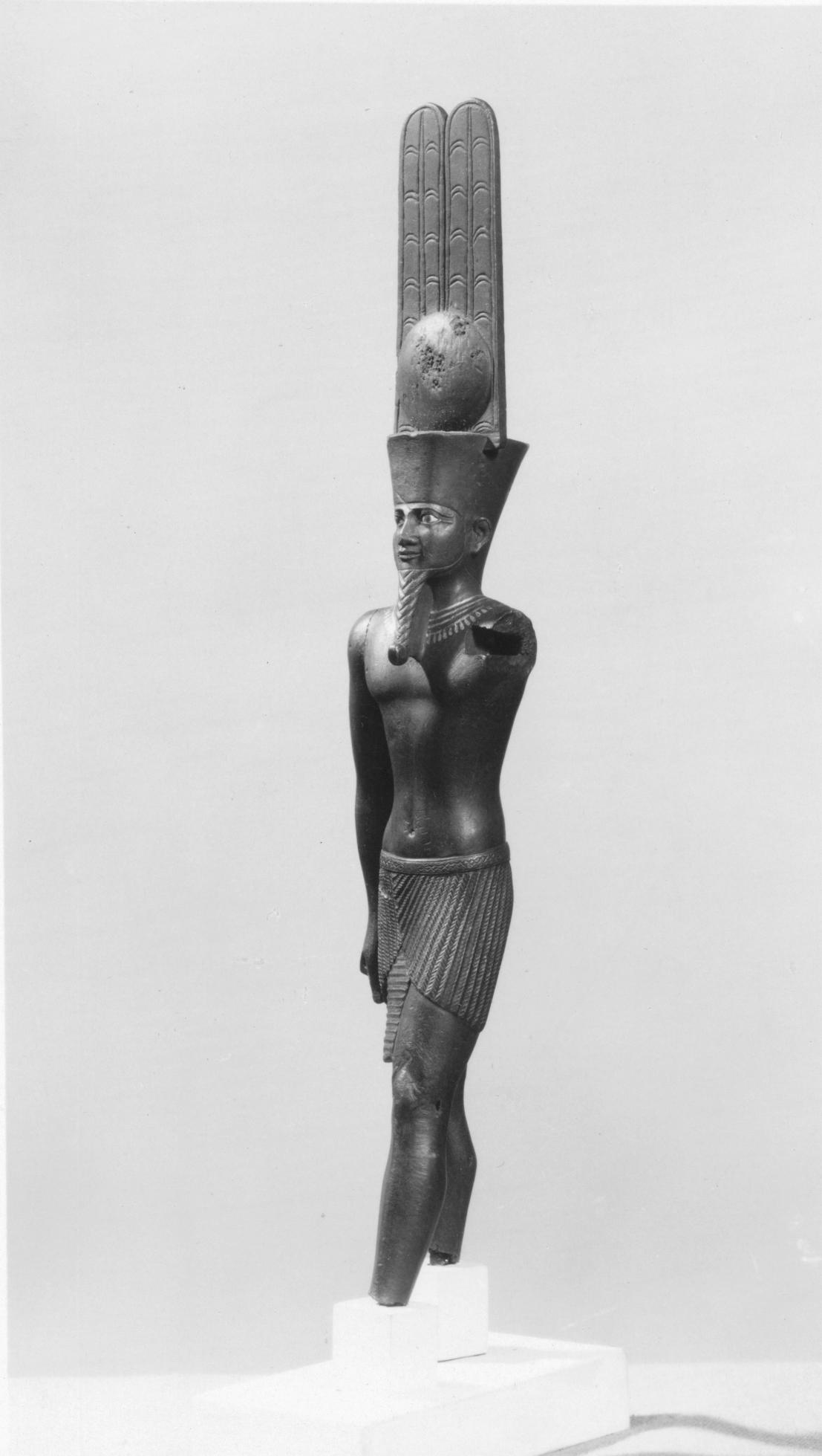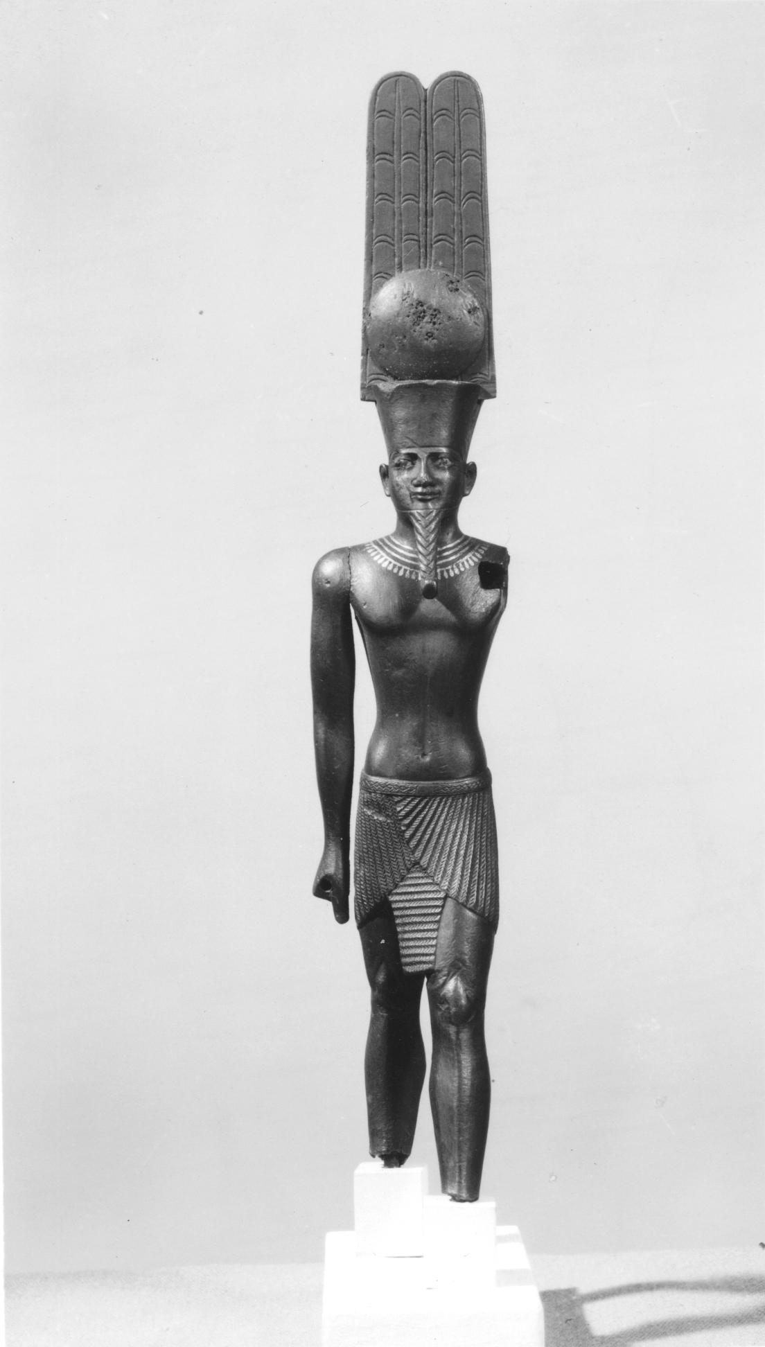 Amun-Re in a Crown with Tall Plumes, ca. 760–656 B.C.E.. Bronze, gold, 7 15/16 x 1 1/2 x 1 7/16 in. (20.2 x 3.8 x 3.7 cm). Brooklyn Museum, Charles Edwin Wilbour Fund, 37.254E. (Photo: Brooklyn Museum)