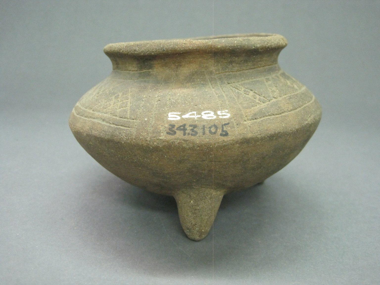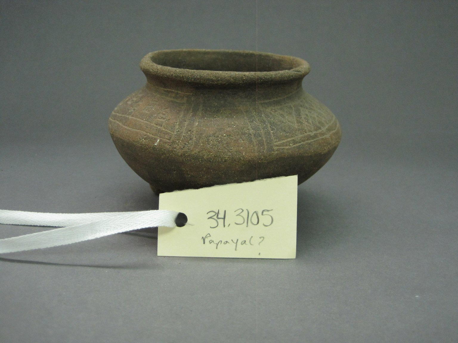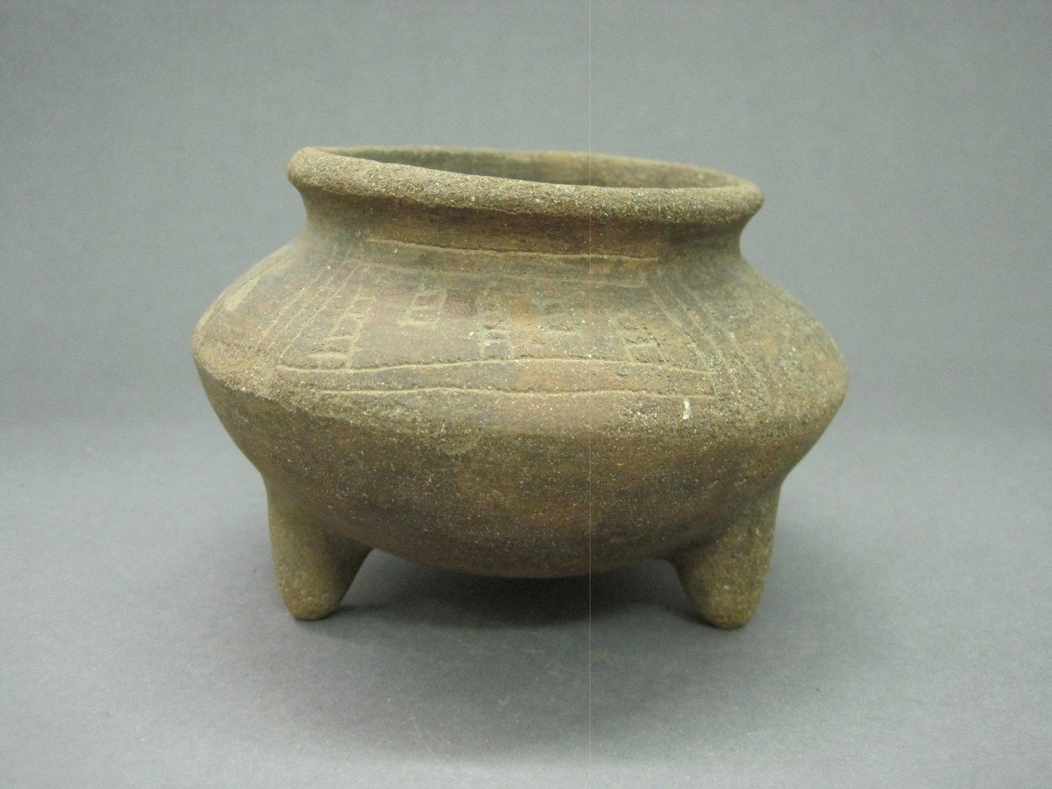 Tripod Jar, 800–1550. Ceramic, pigment, 3 3/8 x 5 x 5 in. (8.6 x 12.7 x 12.7 cm). Brooklyn Museum, Alfred W. Jenkins Fund, 34.3105. (Photo: Brooklyn Museum)