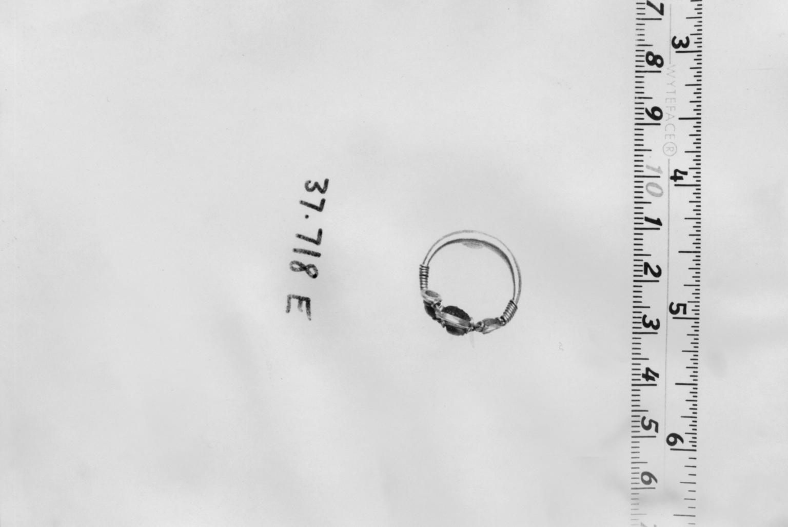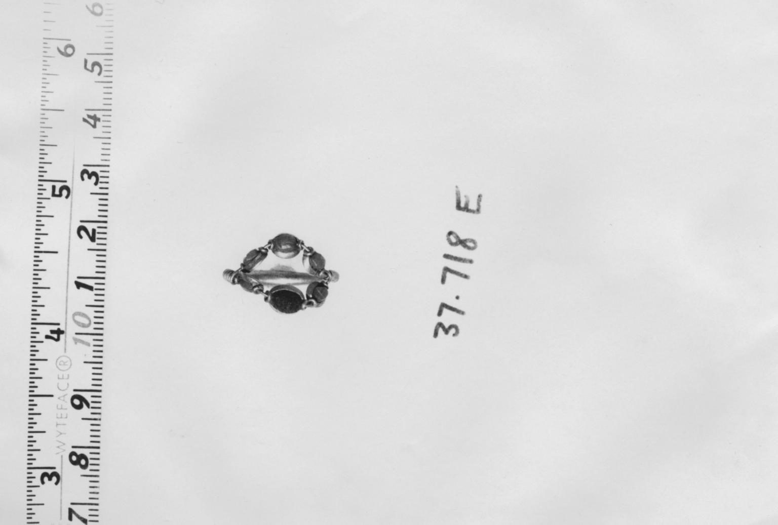 13/16 in. (2 cm) Other (Largest scarab): 1/8 x 1/4 x 1/4 in. (0.3 x 0.6 x 0.6 cm) The other scarabs all measured in gold mounts.: 3/16 x 3/16 x 3/16 in. (0.5 x 0.5 x 0.4 cm) Other (Inner diameter of ring): 11/16 in. (1.7 cm)