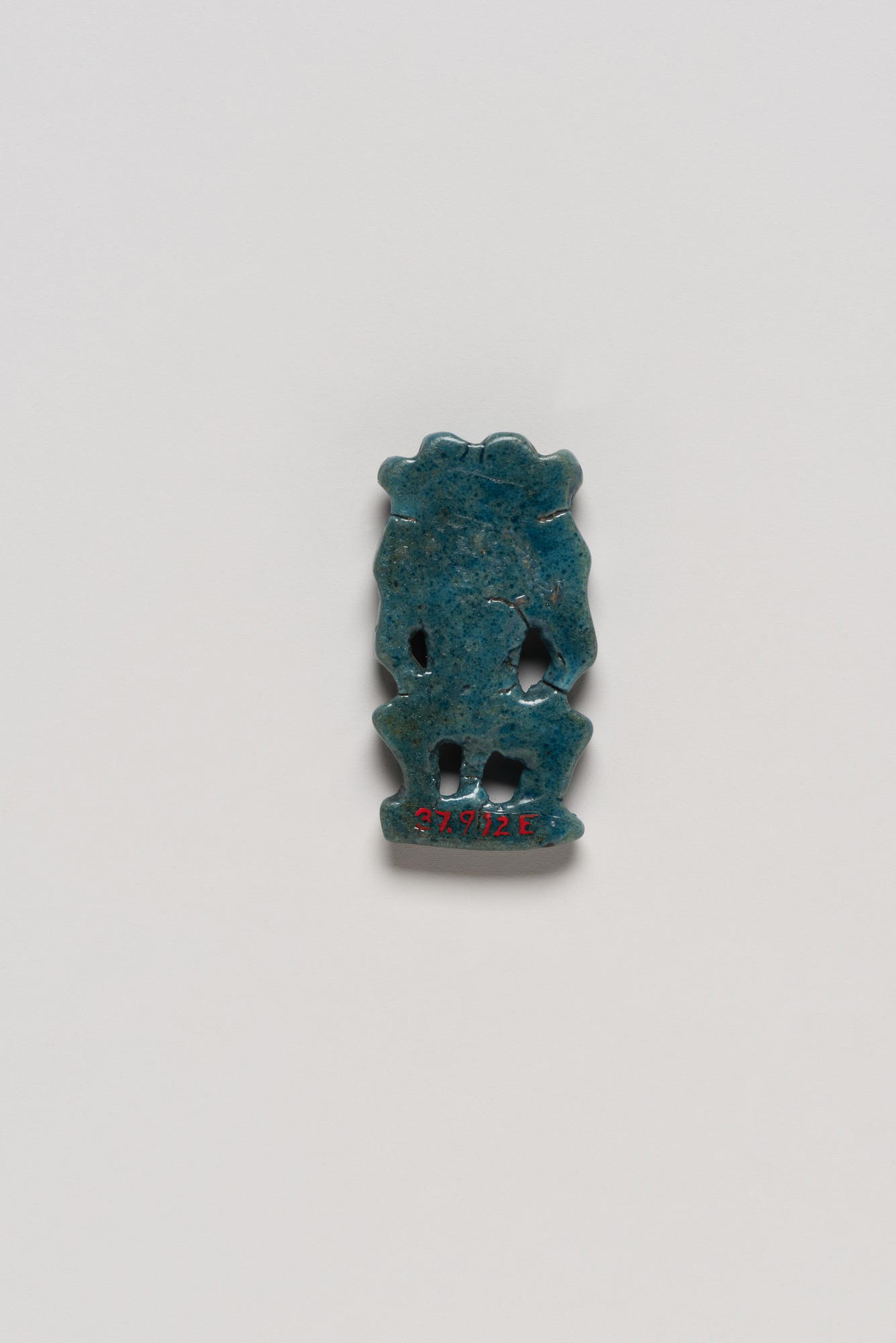 Male Birth-God, ca. 1539–1425 B.C.E.. Faience, 1 1/4 x 11/16 x 3/16 in. (3.1 x 1.7 x 0.5 cm). Brooklyn Museum, Charles Edwin Wilbour Fund, 37.912E. (Photo: Brooklyn Museum)