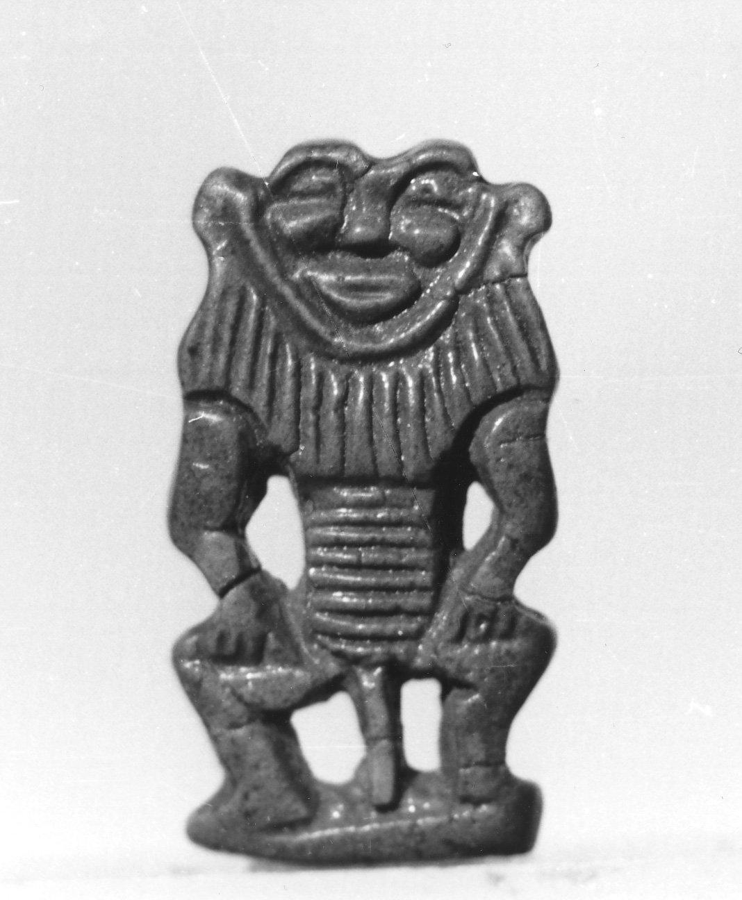 During the Middle Kingdom and at the beginning of the Eighteenth Dynasty, the male birth-god appeared as a lion-man: a human man with a feline mane and tail. Around the middle of the dynasty, the Egyptians sought to combat an increase in infant mortality with a new amuletic form. Beginning with Amunhotep II (circa 1426–1400 B.C.E.), the birth-god’s body assumed the characteristics of a dwarf with short, thick limbs, sunken chest, and fleshy buttocks. Because dwarfs rarely survived infancy in antiquity, one who did was considered magical. By combining the attributes of these “charmed” dwarfs with the ancient lion-man, craftsmen produced a new, more powerful protector of women and children.