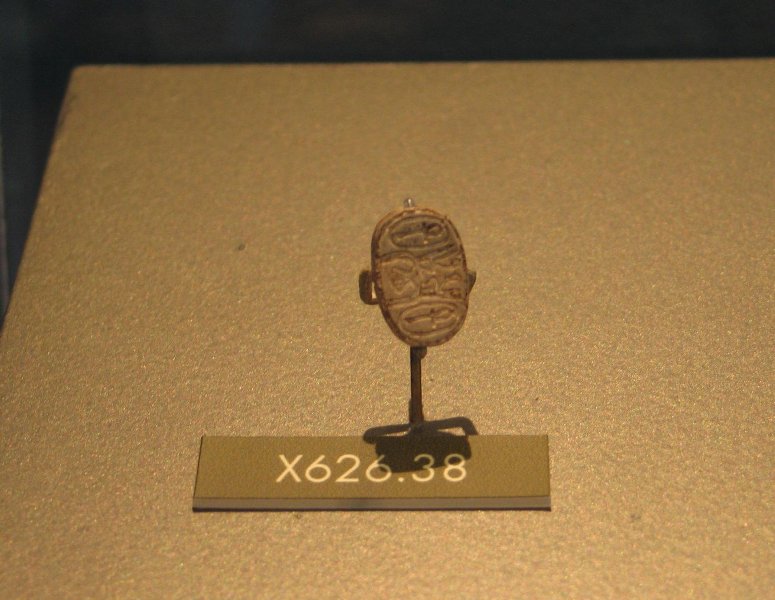 Motto Scarab, ca. 1630–1539 B.C.E.. Steatite, glaze, 5/16 x 1/2 x 13/16 in. (0.8 x 1.3 x 2 cm). Brooklyn Museum, Brooklyn Museum Collection, X626.38. (Photo: Brooklyn Museum)