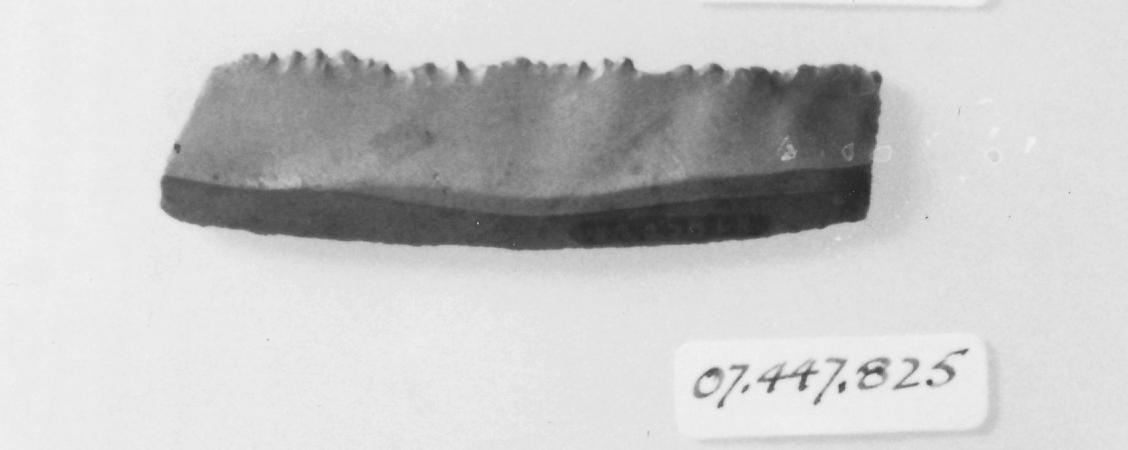 Sickle Blade, ca. 3500–3100 B.C.E.. Flint, 13/16 x 2 15/16 in. (2 x 7.4 cm). Brooklyn Museum, Charles Edwin Wilbour Fund, 07.447.825. (Photo: Brooklyn Museum)