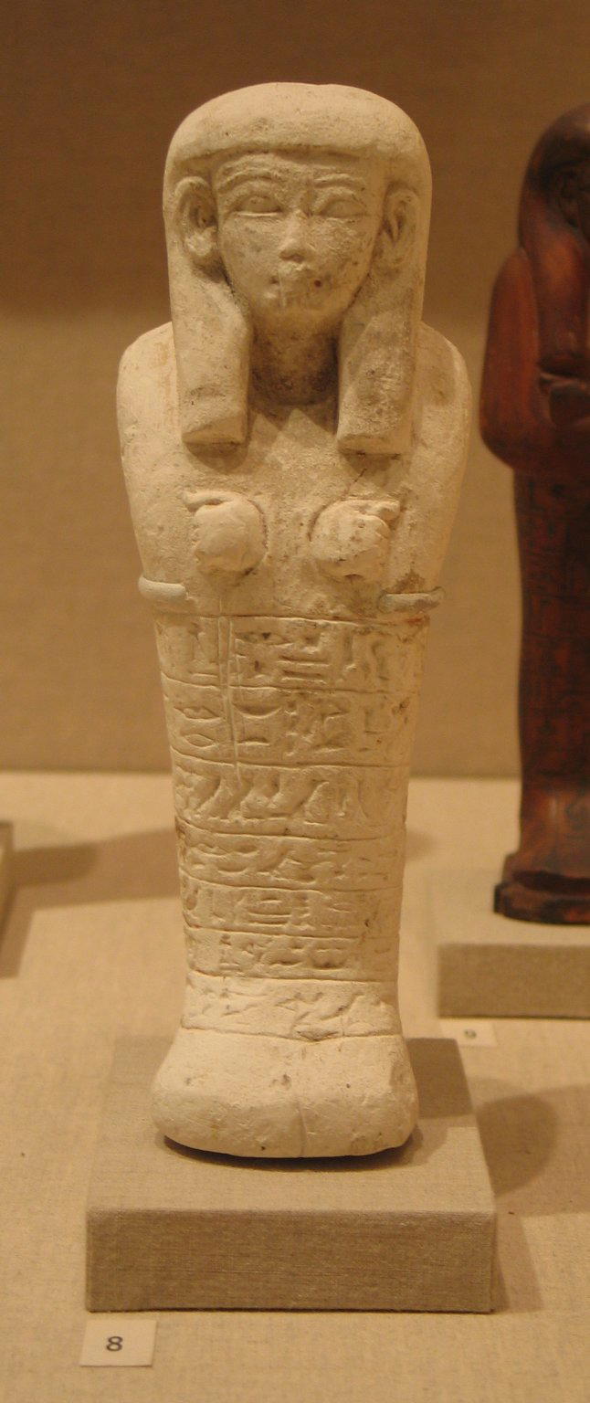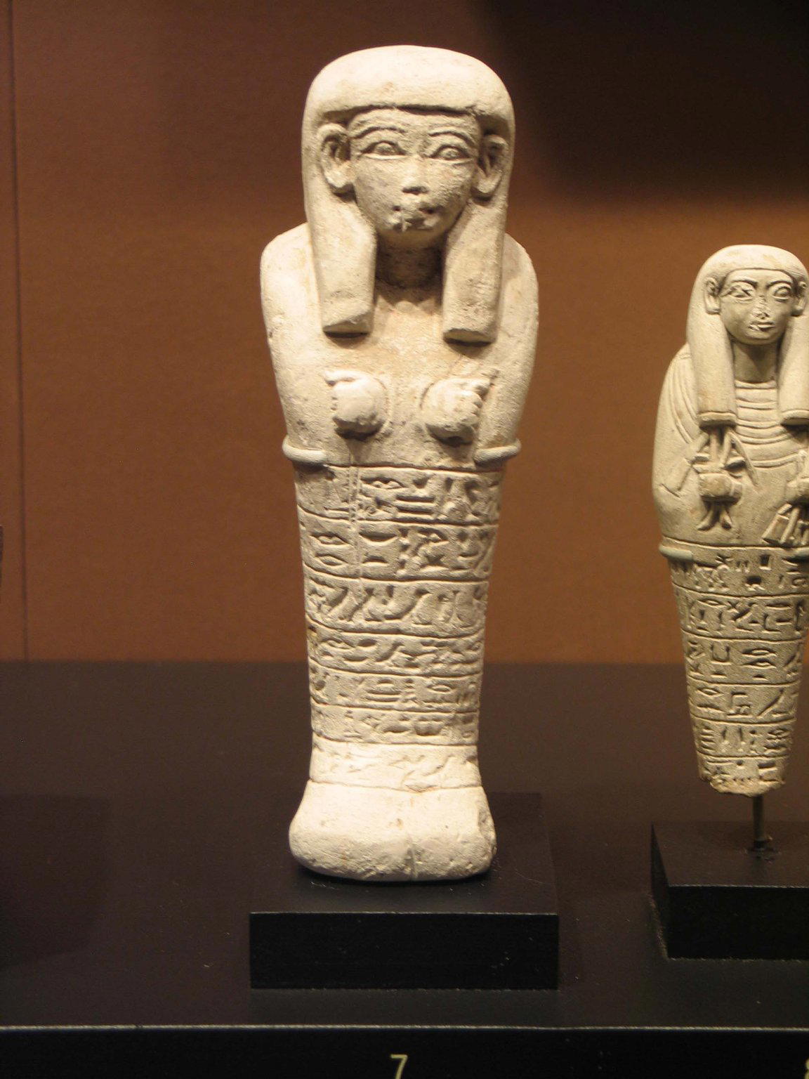 These figurines were inscribed to the person they were buried with and were thought to come to life in order to help with chores, especially agricultural tasks.They came in a wide range of qualities, from customized and individualized (the most expensive) to mold made and mass produced.