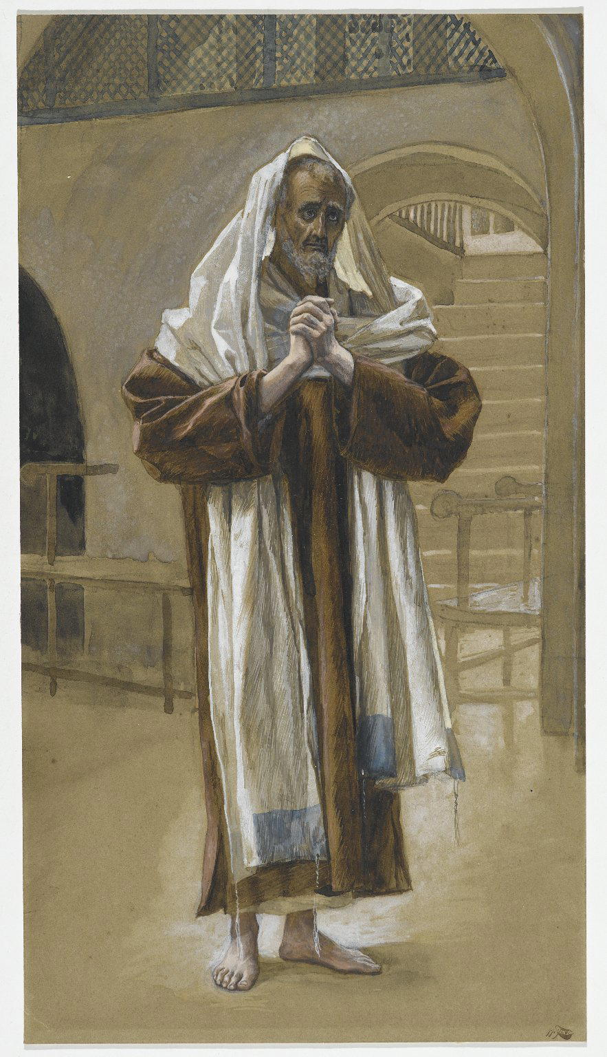 James Tissot (Nantes, France, 1836–1902, Chenecey–Buillon, France). Saint Andrew (Saint André), 1886–1894. Opaque watercolor over graphite on gray wove paper, Image: 11 7/8 x 6 1/2 in. (30.2 x 16.5 cm) Sheet: 11 7/8 x 6 1/2 in. (30.2 x 16.5 cm). Brooklyn Museum, Purchased by public subscription, 00.159.57. (Photo: Brooklyn Museum)