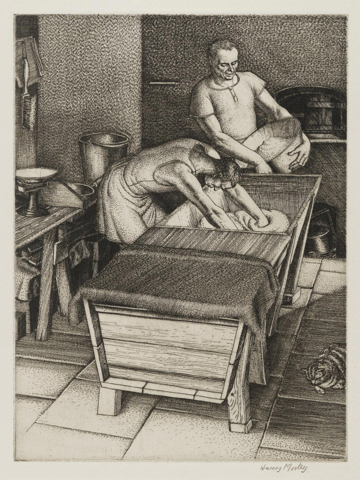 Harry Morley (British, 1881–1943). The Bakehouse, 1934. Line engraving on wove paper, 7 7/8 x 5 7/8 in. (20 x 15 cm). Brooklyn Museum, A. Augustus Healy Fund, 35.992. (Photo: Brooklyn Museum)