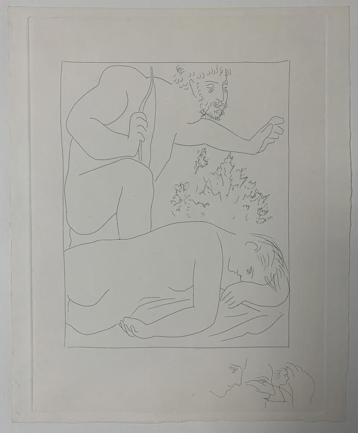 Pablo Picasso (Spanish, 1881–1973). Céphale tue par Mégarde sa femme procris, 1930. Etching on Japan paper, laid down on mat board with tape at left edge, Sheet: 12 13/16 x 10 in. (32.5 x 25.4 cm) Other (plate): 12 1/4 x 8 3/4 in. (31.1 x 22.2 cm). Brooklyn Museum, By exchange, 36.915.14. (Photo: Brooklyn Museum)
