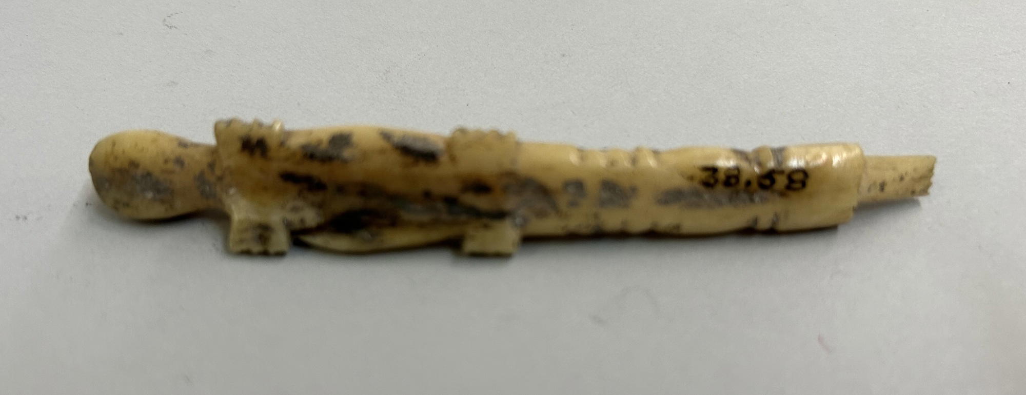 Figure of Lizard, Bone, pigment, 1/2 × 5/8 × 4 5/16 in. (1.3 × 1.6 × 11 cm). Brooklyn Museum, Carll H. de Silver Fund, 38.58. (Photo: Brooklyn Museum)