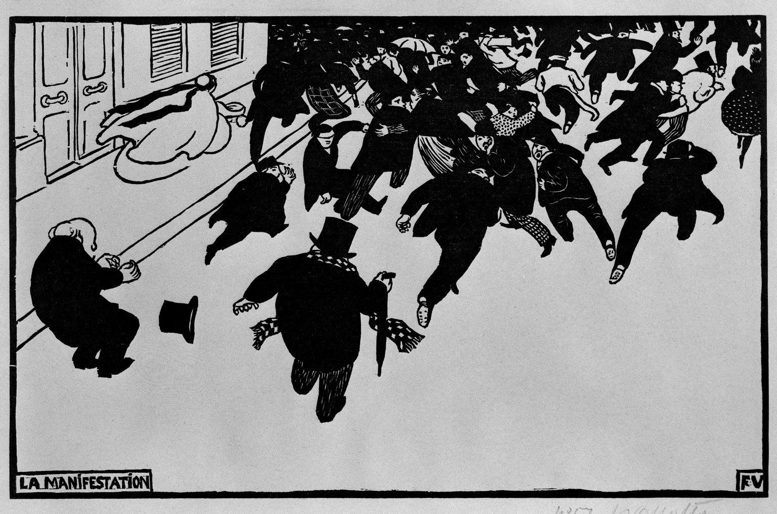 Félix Vallotton (Swiss, 1865–1925). La Manifestation, 1893. Woodcut on wove paper, 8 x 12 9/16 in. (20.3 x 31.9 cm). Brooklyn Museum, Charles Stewart Smith Memorial Fund, 38.341. (Photo: Brooklyn Museum)