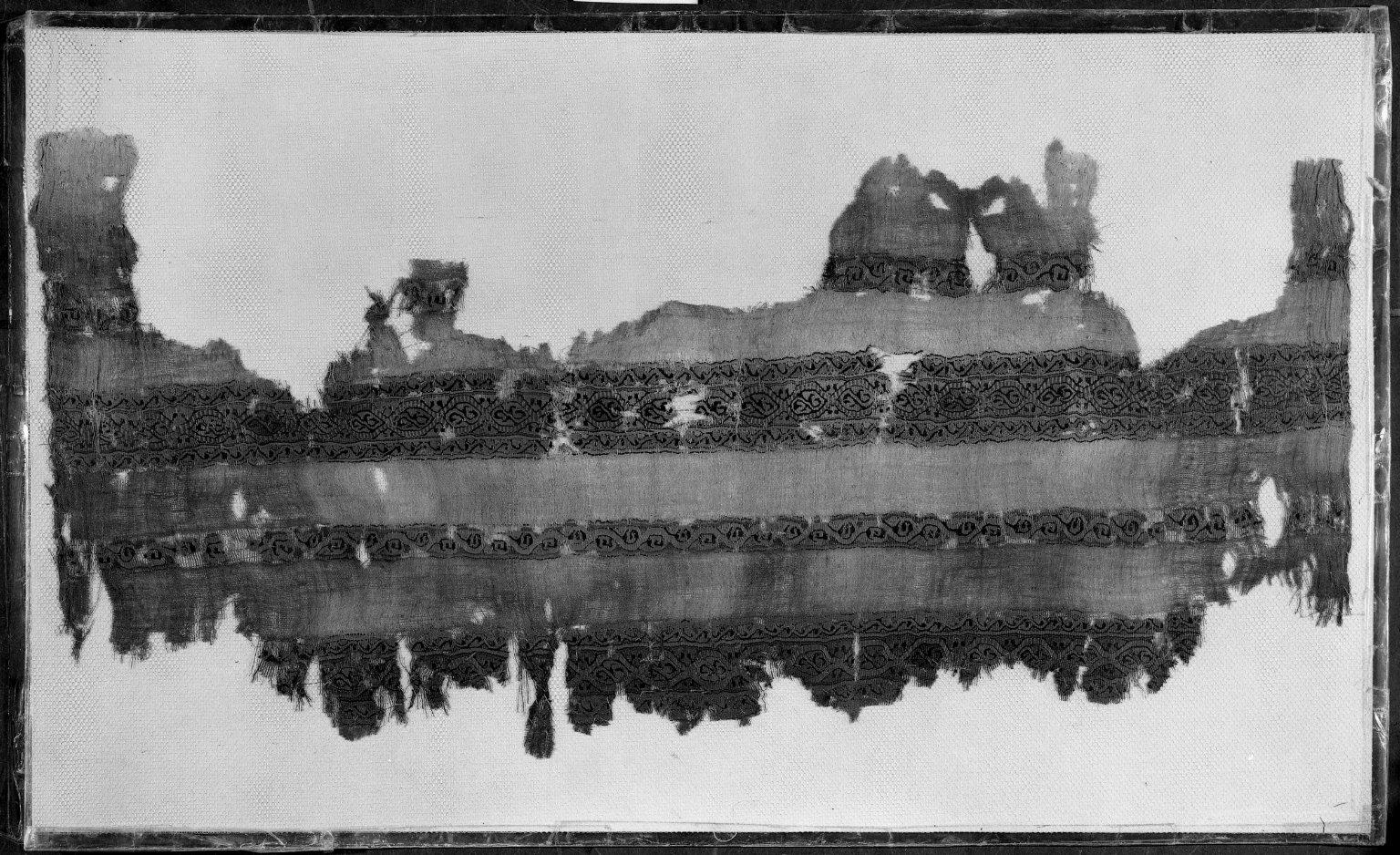 Egypto-Arabic Textile, end of scarf or turban, 10th–11th century. Linen with silk tapestry woven band, 19 5/8 x 9 in. Brooklyn Museum, Charles Edwin Wilbour Fund, 38.819. (Photo: Brooklyn Museum)