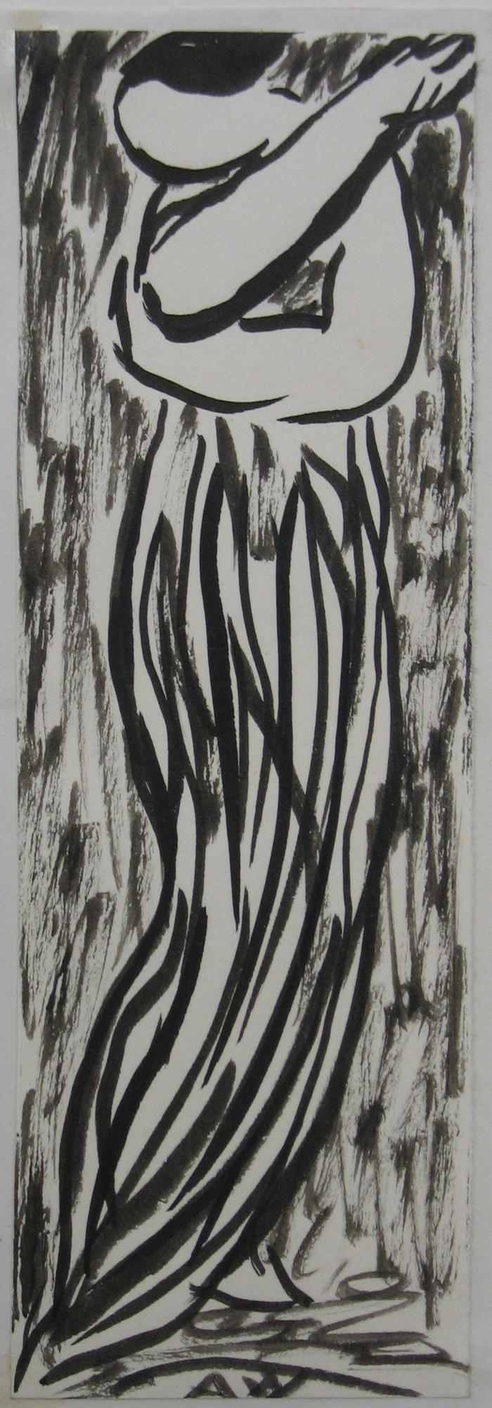 Abraham Walkowitz (American, born Russia, 1878–1965). Draped Figure, n.d.. Brush drawing and India ink on paper mounted to paper, Sheet (mount): 8 1/2 x 11 in. (21.6 x 27.9 cm) Sheet (drawing): 6 3/4 x 2 5/16 in. (17.1 x 5.9 cm). Brooklyn Museum, Gift of the artist, 39.471d. (Photo: Brooklyn Museum)