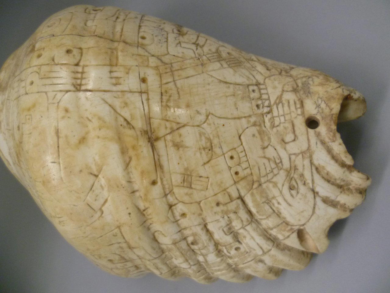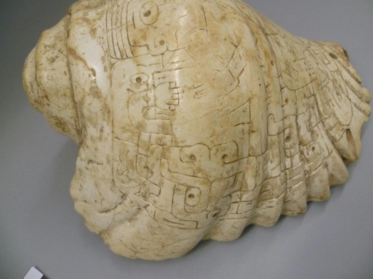 It is a trumpet made from a Strombus shell that has been elaborately decorated. Shells were important trade items and a trumpet like this would have been played in public ceremonies.How would something like this have been made?