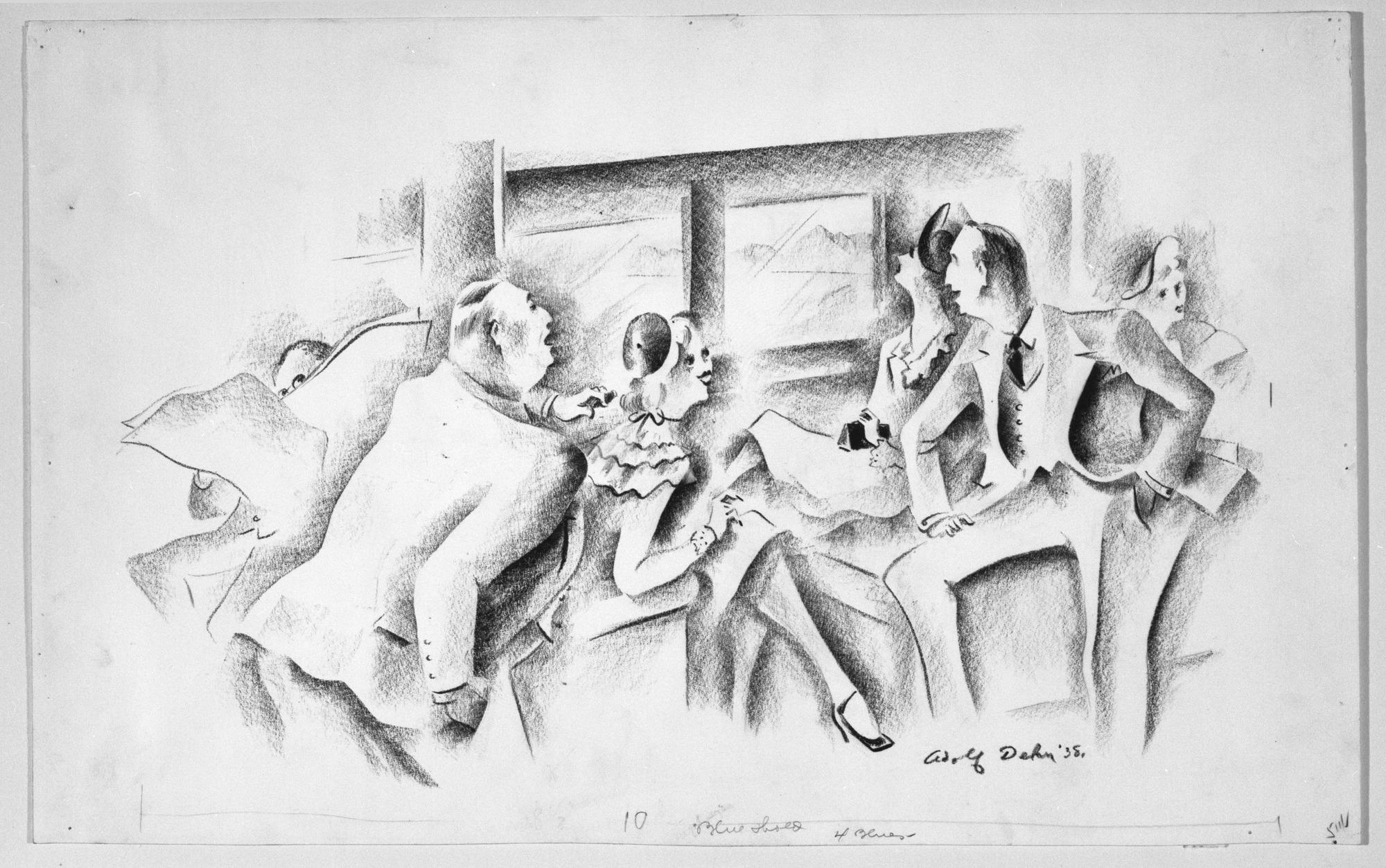 Adolf Arthur Dehn (American, 1895–1968). Commuters, 1938; published January 1939. Black crayon on heavy wove paper, Sheet: 14 3/8 x 22 7/8 in. (36.5 x 58.1 cm). Brooklyn Museum, Gift of Harper's Bazaar, 42.240. © Estate of Adolf Arthur Dehn. (Photo: Brooklyn Museum)