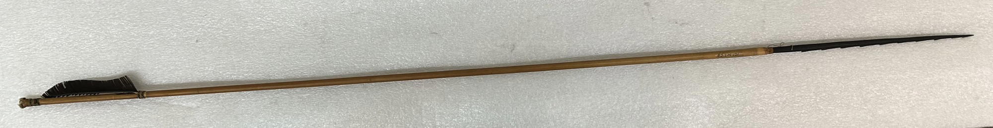 Spear, early 20th century. Cane, wood, feather, cotton, 1 1/2 in. × 64 1/4 in. (3.8 × 163.2 cm). Brooklyn Museum, Anonymous gift in memory of Dr. Harlow Brooks, 43.201.121. (Photo: Brooklyn Museum)