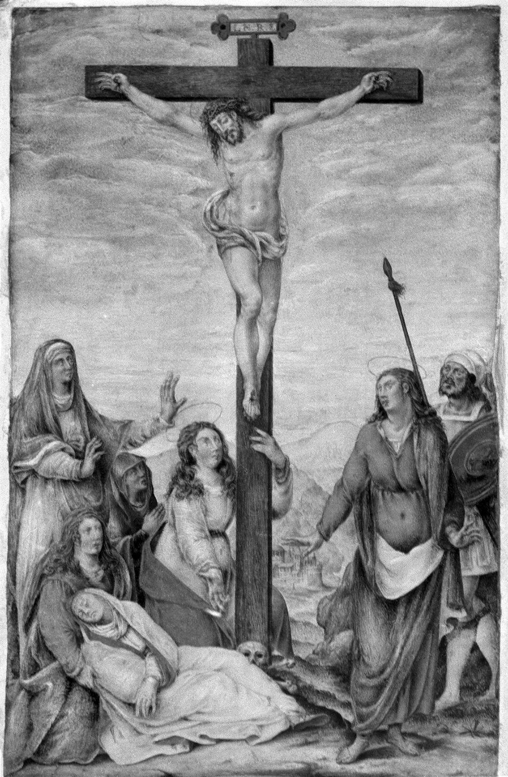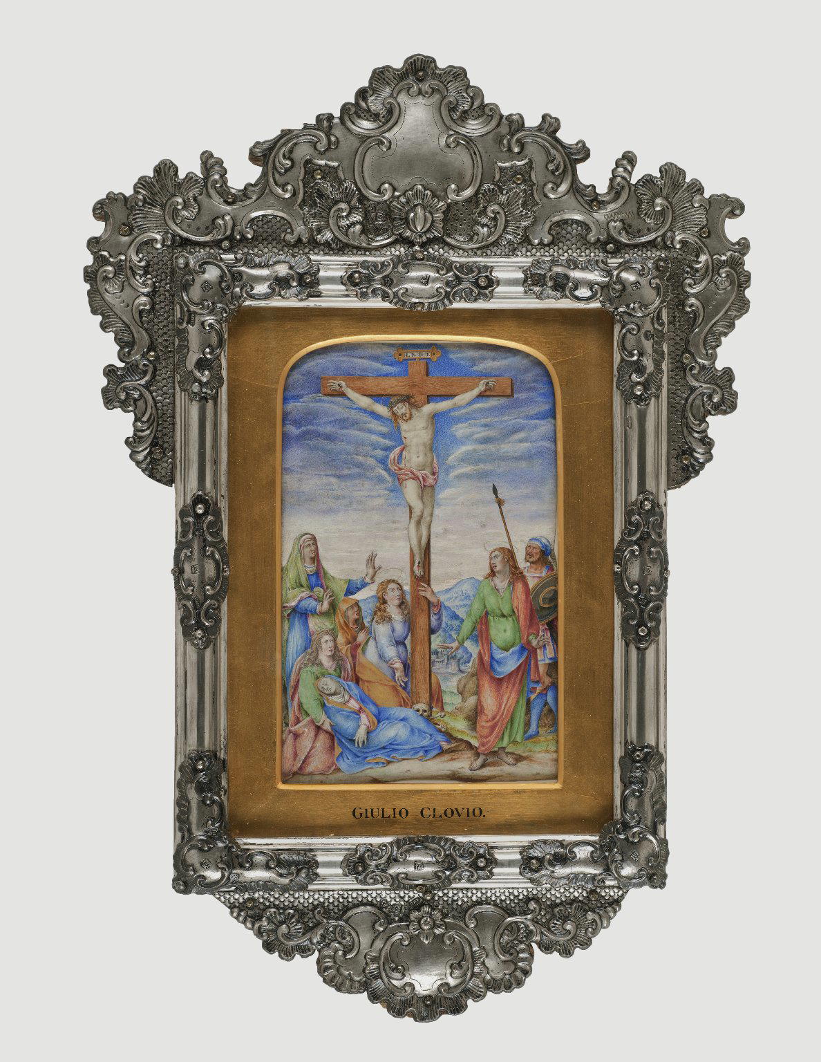 Attributed to Giulio Clovio (Italian, 1498–1578). Crucifixion, ca. 1572. Tempera on parchment, 9 1/8 × 5 5/8 in. (23.2 × 14.3 cm) frame: 20 1/8 × 14 × 2 in. (51.1 × 35.6 × 5.1 cm). Brooklyn Museum, Gift of A. Augustus Healy, 11.499. (Photo: Brooklyn Museum)