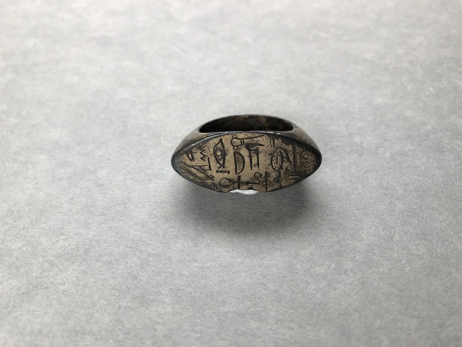 Signet Ring, 664–525 B.C.E.. Silver gilt, 9/16 × 11/16 × 1 1/4 in. (1.5 × 1.7 × 3.1 cm). Brooklyn Museum, Charles Edwin Wilbour Fund, 44.123.122.