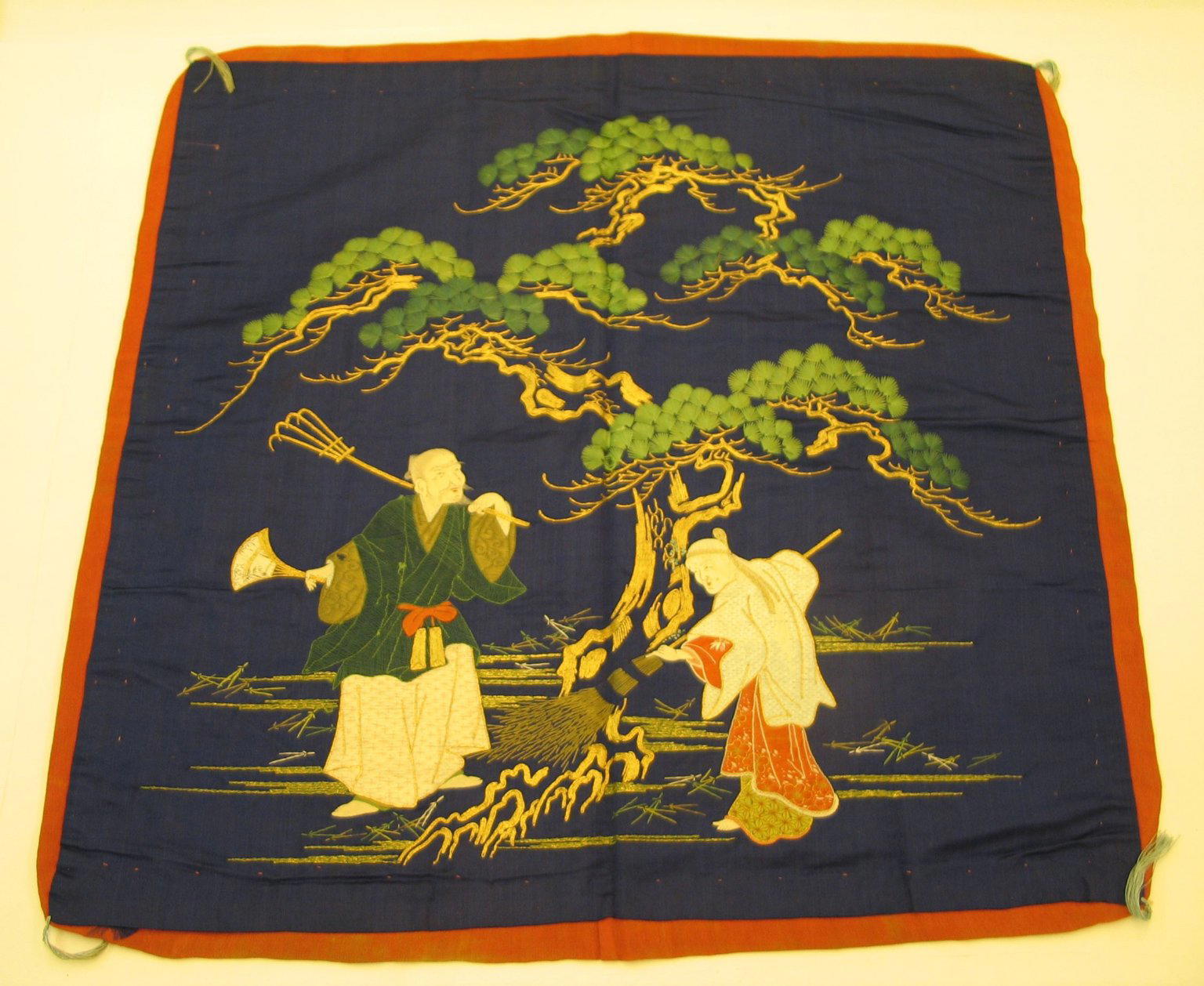 Embroidered Gift Cloth, Silk floss and gold thread, gift cloth: 27 15/16 x 27 3/16 in. (71 x 69 cm). Brooklyn Museum, Gift of Jane Van Vleck, 44.185.11. (Photo: Brooklyn Museum)