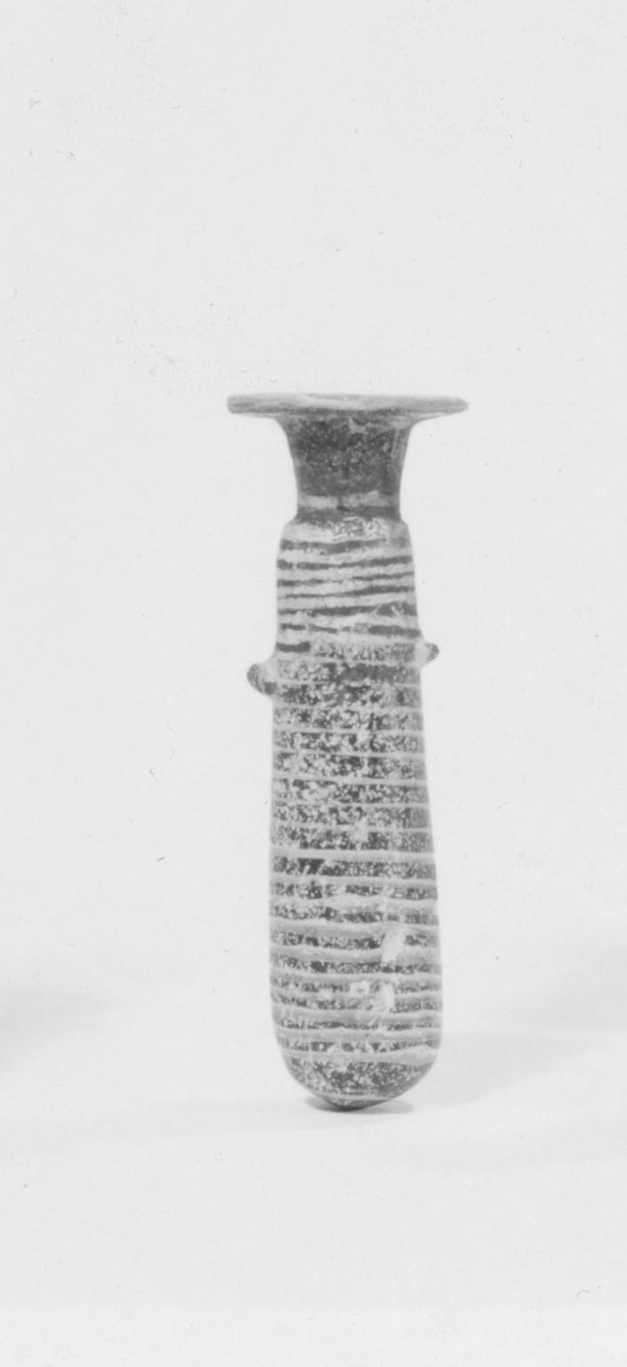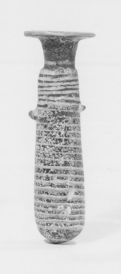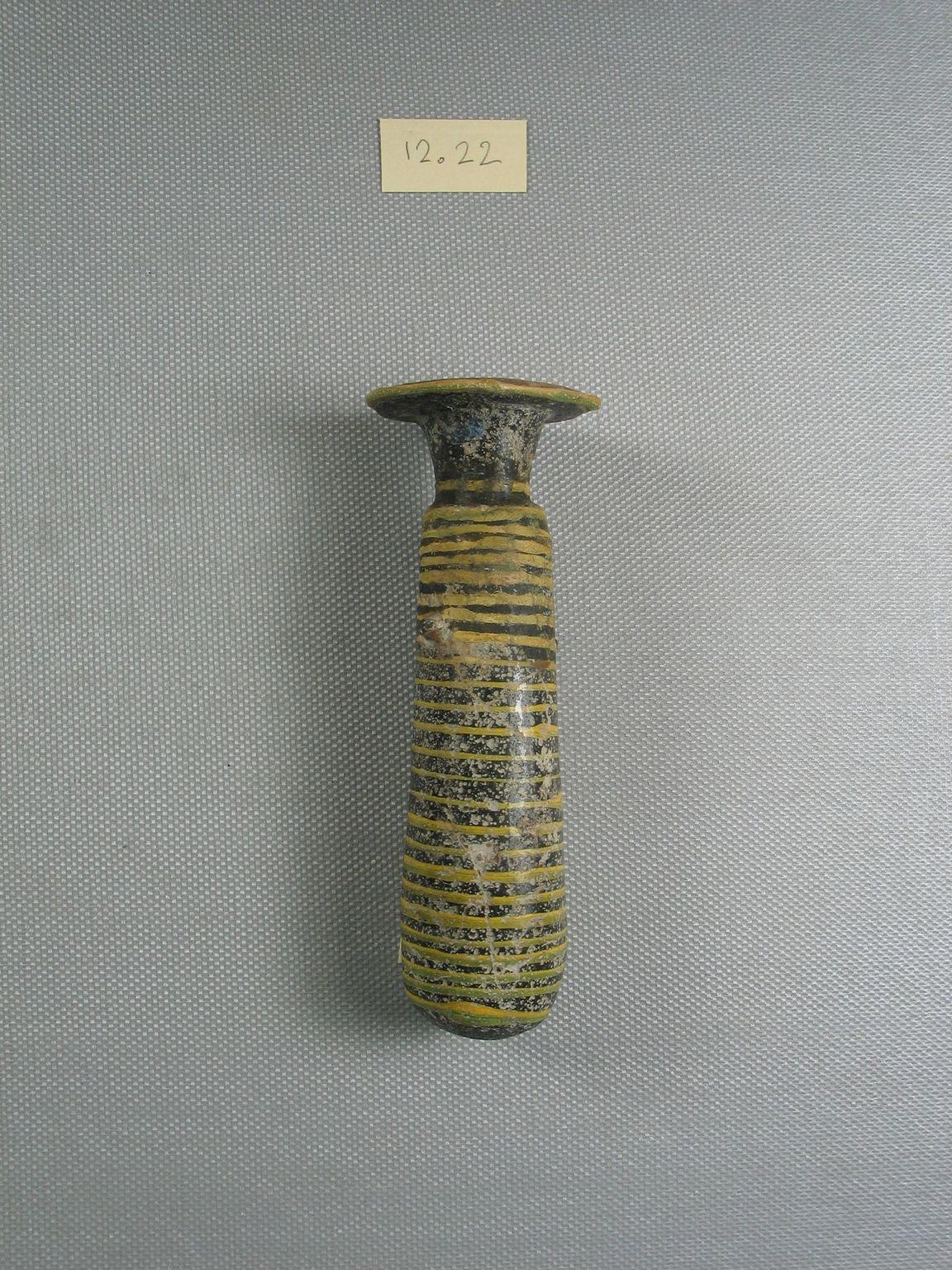 Cylindrical Alabastron, mid 4th–late 3rd century B.C.E.. Glass, 4 1/4 x Diam. 1 1/16 in. (10.8 x 2.7 cm). Brooklyn Museum, Purchased with funds given by Robert B. Woodward, 12.22. (Photo: Brooklyn Museum)
