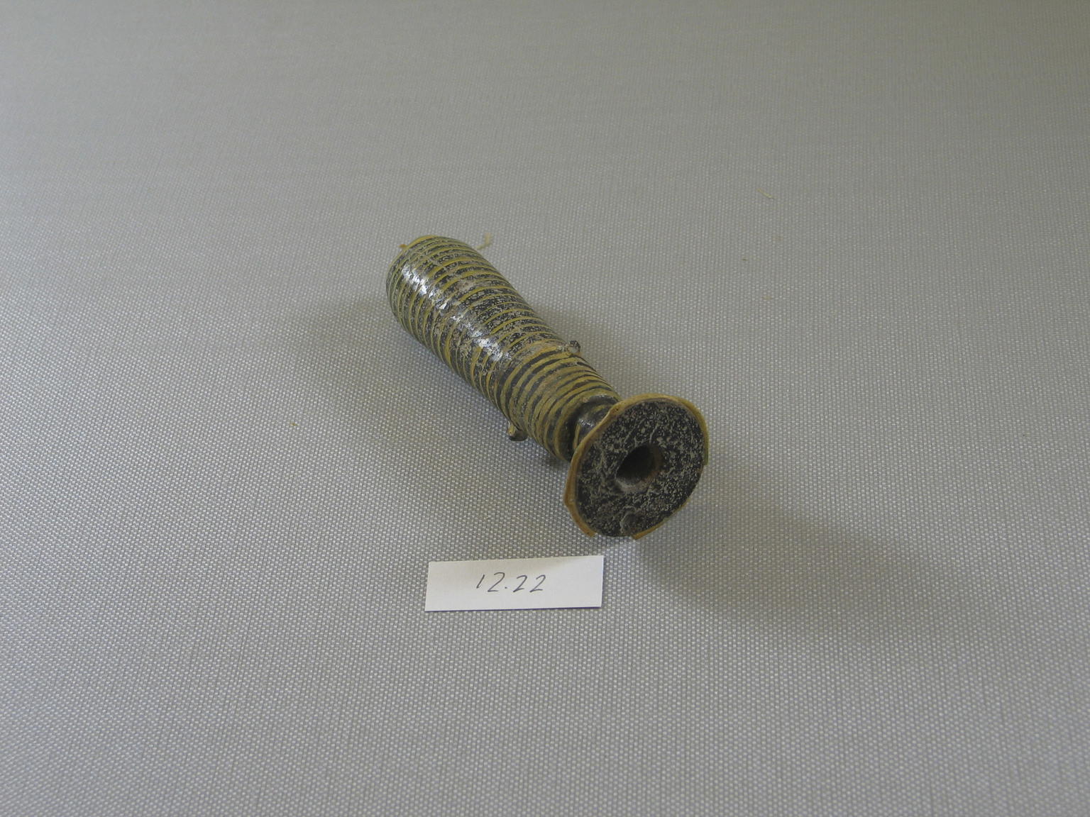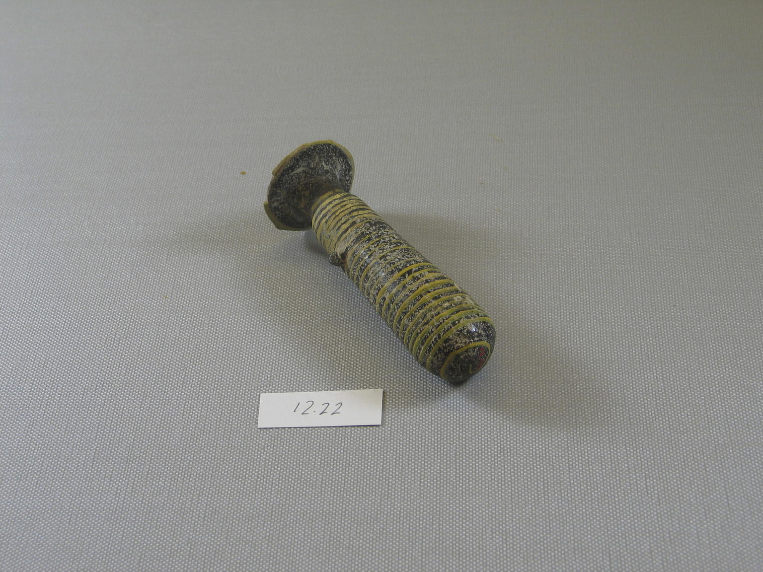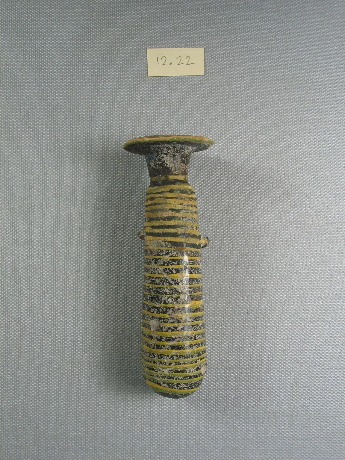 Cylindrical Alabastron, mid 4th–late 3rd century B.C.E.. Glass, 4 1/4 x Diam. 1 1/16 in. (10.8 x 2.7 cm). Brooklyn Museum, Purchased with funds given by Robert B. Woodward, 12.22. (Photo: Brooklyn Museum)