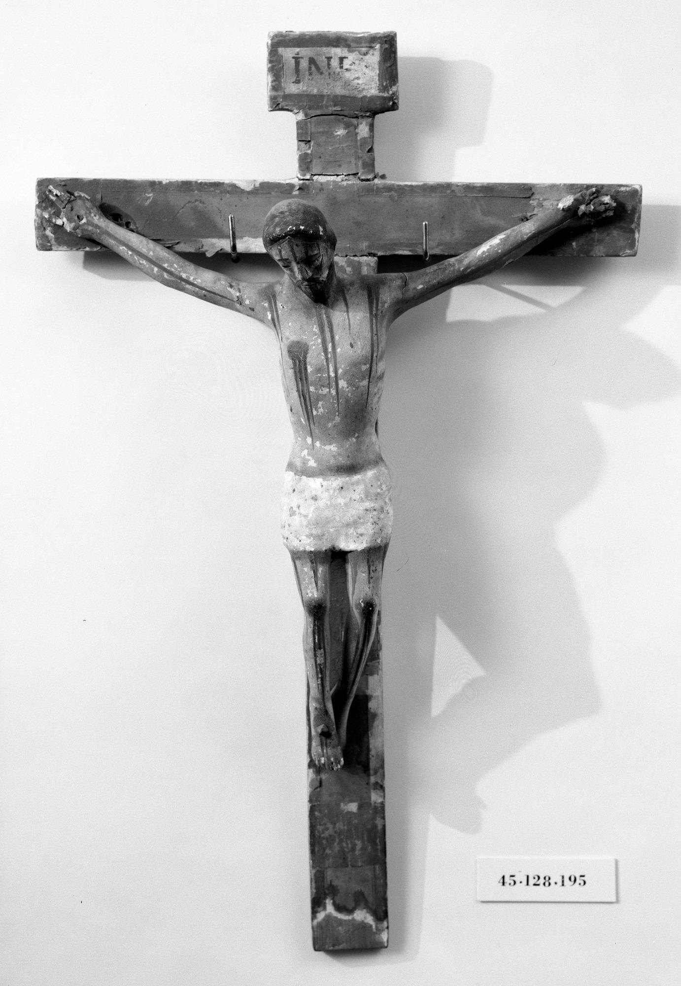 Unknown Artist. Crucifix, Painted wood, cross: 20 3/4 x 13 9/16 in. (52.7 x 34.4 cm) figure: 12 3/4 x 13 in. (32.4 x 33 cm). Brooklyn Museum, Henry L. Batterman Fund, 45.128.195. (Photo: Brooklyn Museum)