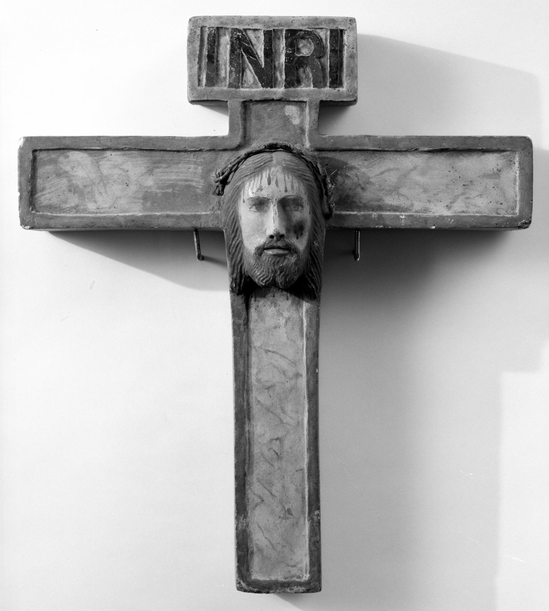 Unknown Artist. Cross with head of Christ at center, Painted stone, 16 x 14 x 2 in. (40.6 x 35.6 x 5.1 cm). Brooklyn Museum, Henry L. Batterman Fund, 45.128.210. (Photo: Brooklyn Museum)