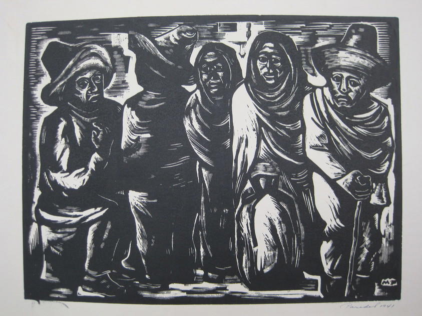 Mariano Paredes Limón (Mexican,1912–1980). Five Mexican Figures, 1941. Linocut on paper, 8 3/4 x 11 3/4 in. (22.2 x 29.8 cm). Brooklyn Museum, Gift of Koloman Sakol, 45.186. (Photo: Brooklyn Museum)