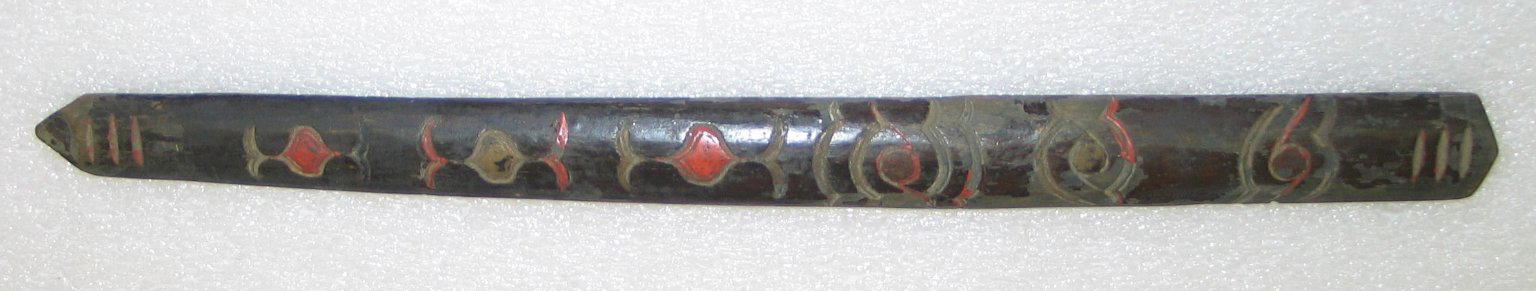 Ainu. Long Straight Prayer Stick, Wood, 1 x 12 7/8 in. (2.5 x 32.7 cm). Brooklyn Museum, Gift of Herman Stutzer, 12.242. (Photo: Brooklyn Museum)