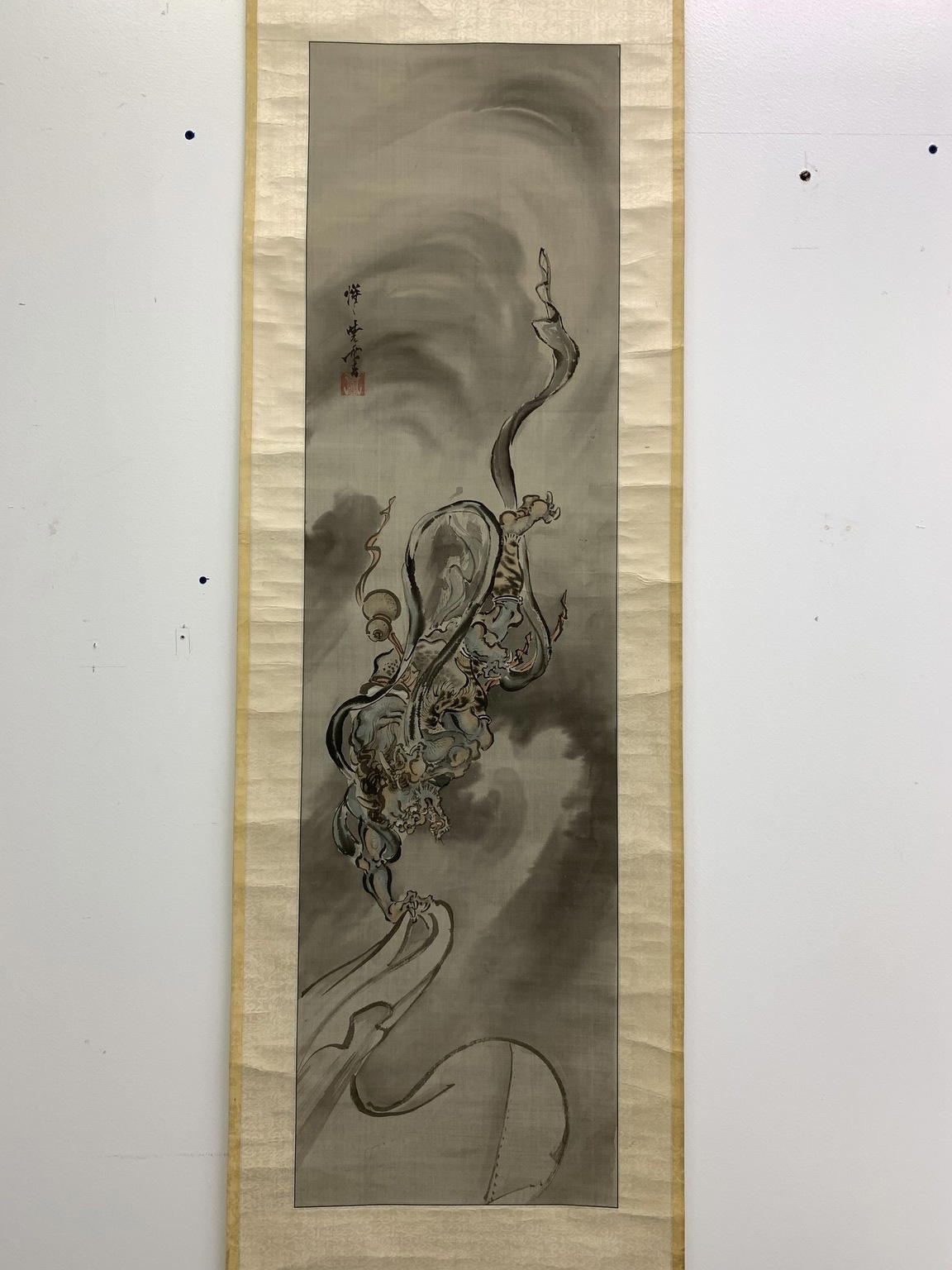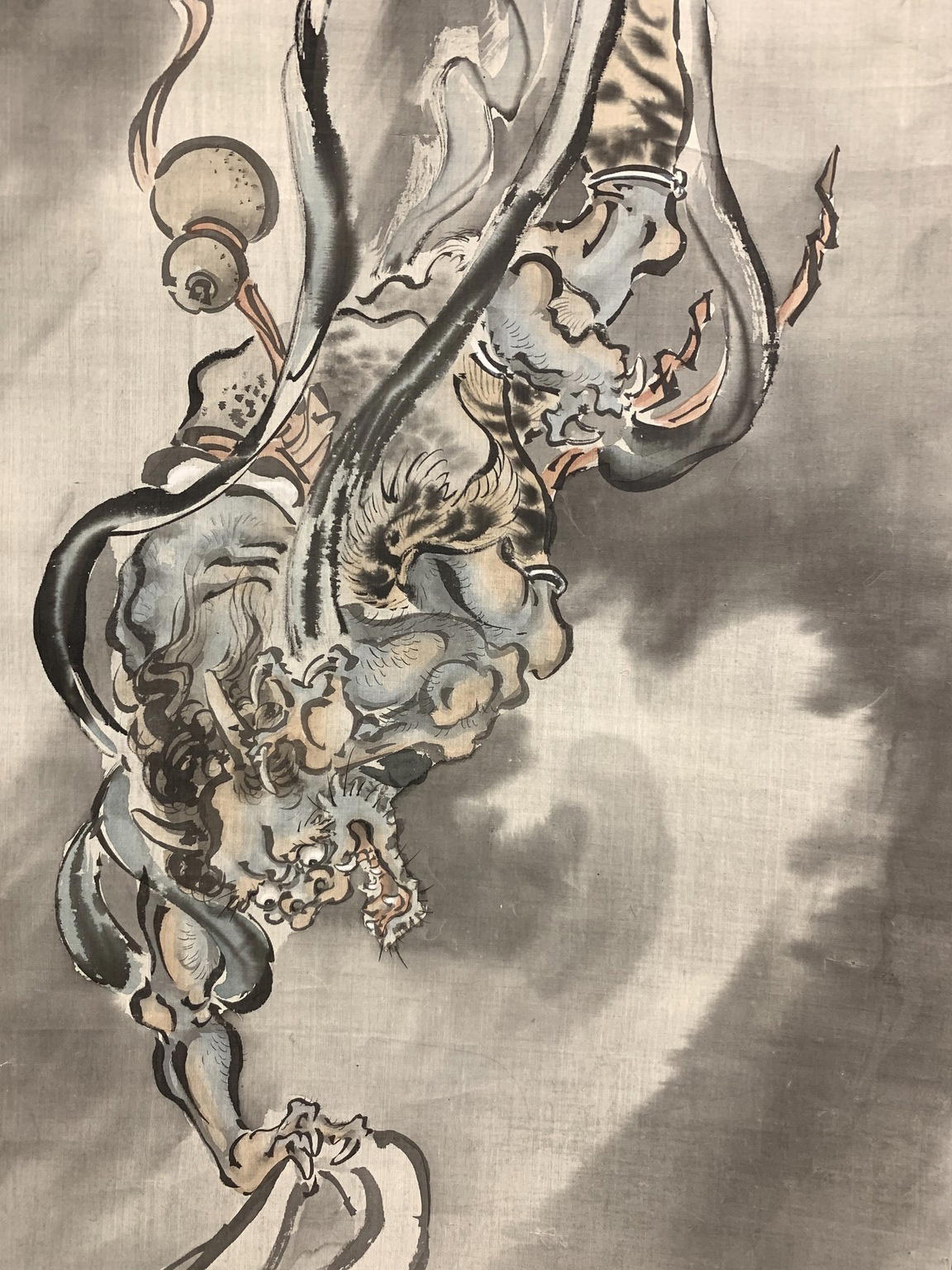 Kawanabe Kyosai (Japanese, 1831–1889). The God of Wind, One of Pair of Scrolls Depicting The God of Wind Chased by An Eagle, 19th century. Hanging scroll; ink and color on silk, Image: 48 13/16 x 13 11/16 in. (124 x 34.8 cm) 75 1/4 x 22 1/2 in. (191.1 x 57.2 cm). Brooklyn Museum, Frank L. Babbott Fund, 47.185.1.