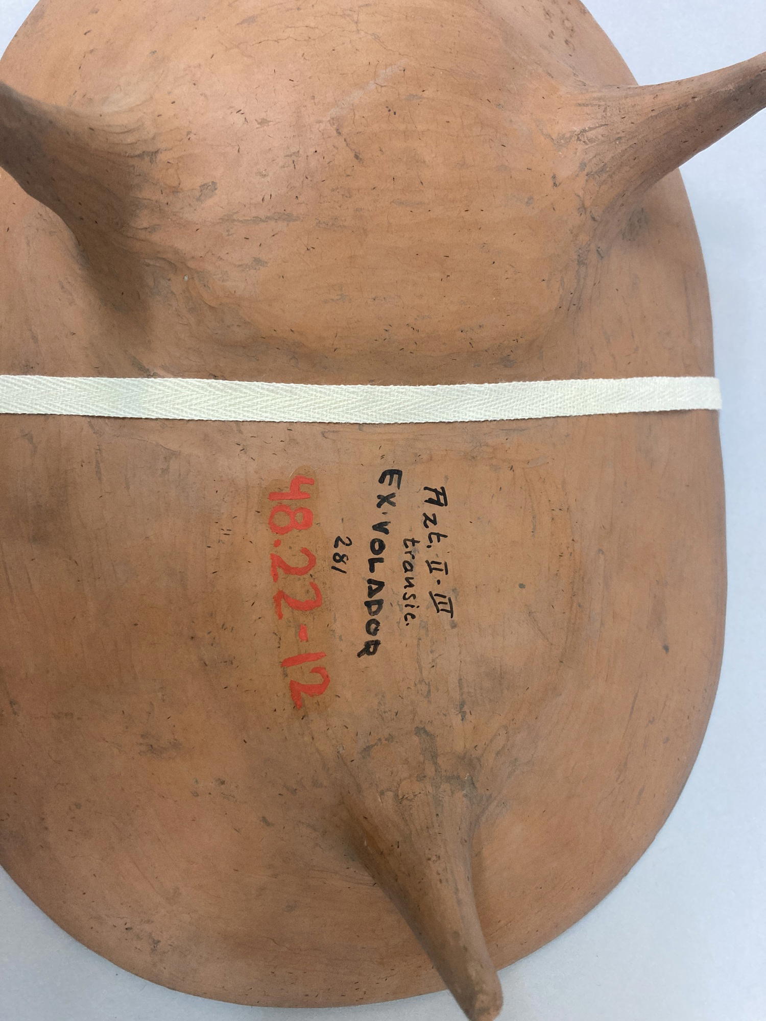Aztec. Tripod Plate, ca. 1440–1521. Ceramic, pigment, 2 11/16 x 6 9/16 x 6 9/16 in. (6.8 x 16.7 x 16.7 cm). Brooklyn Museum, By exchange, 48.22.12. (Photo: Brooklyn Museum)