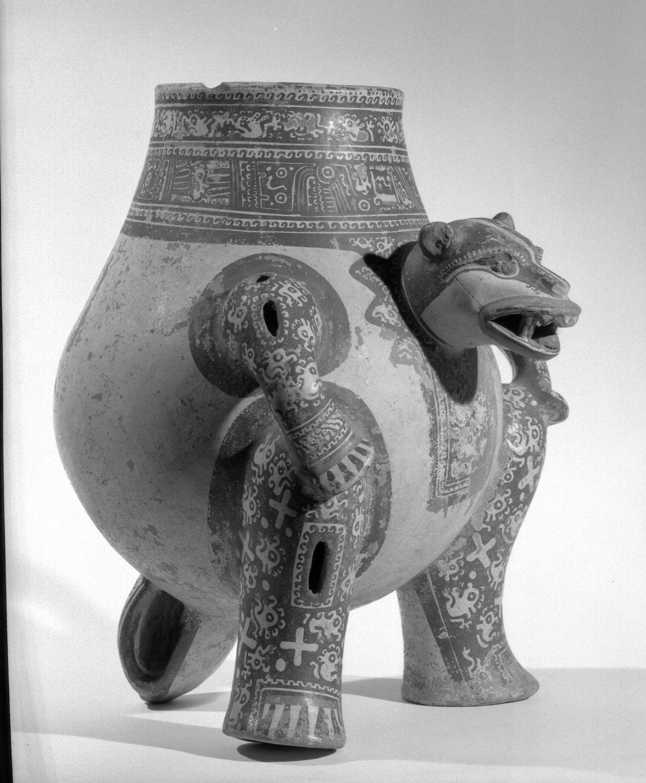Greater Nicoya. Jaguar Effigy Vessel, 1000–1350 CE. Ceramic, pigment, 13 3/8 x 10 13/16 in. (34 x 27.5 cm). Brooklyn Museum, A. Augustus Healy Fund, 48.140.2. (Photo: Brooklyn Museum)