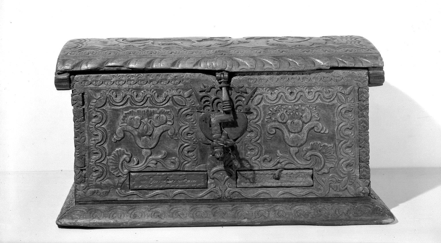 Carved Box, 17th century. Walnut, 12 1/2 x 24 1/2 x 14 1/2 in. (31.8 x 62.2 x 36.8 cm). Brooklyn Museum, Frank L. Babbott Fund, Frank Sherman Benson Fund, Carll H. de Silver Fund, A. Augustus Healy Fund, Caroline A.L. Pratt Fund, Charles Stewart Smith Memorial Fund, and Ella C. Woodward Memorial Fund, 48.206.15. (Photo: Brooklyn Museum)