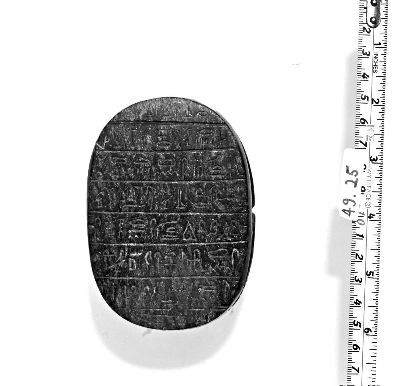 Large Steatite? Heart Scarab, Stone, 1 7/8 x 2 7/8 x 4 1/8 in. (4.7 x 7.3 x 10.4 cm). Brooklyn Museum, Anonymous gift, 49.25. (Photo: Brooklyn Museum)