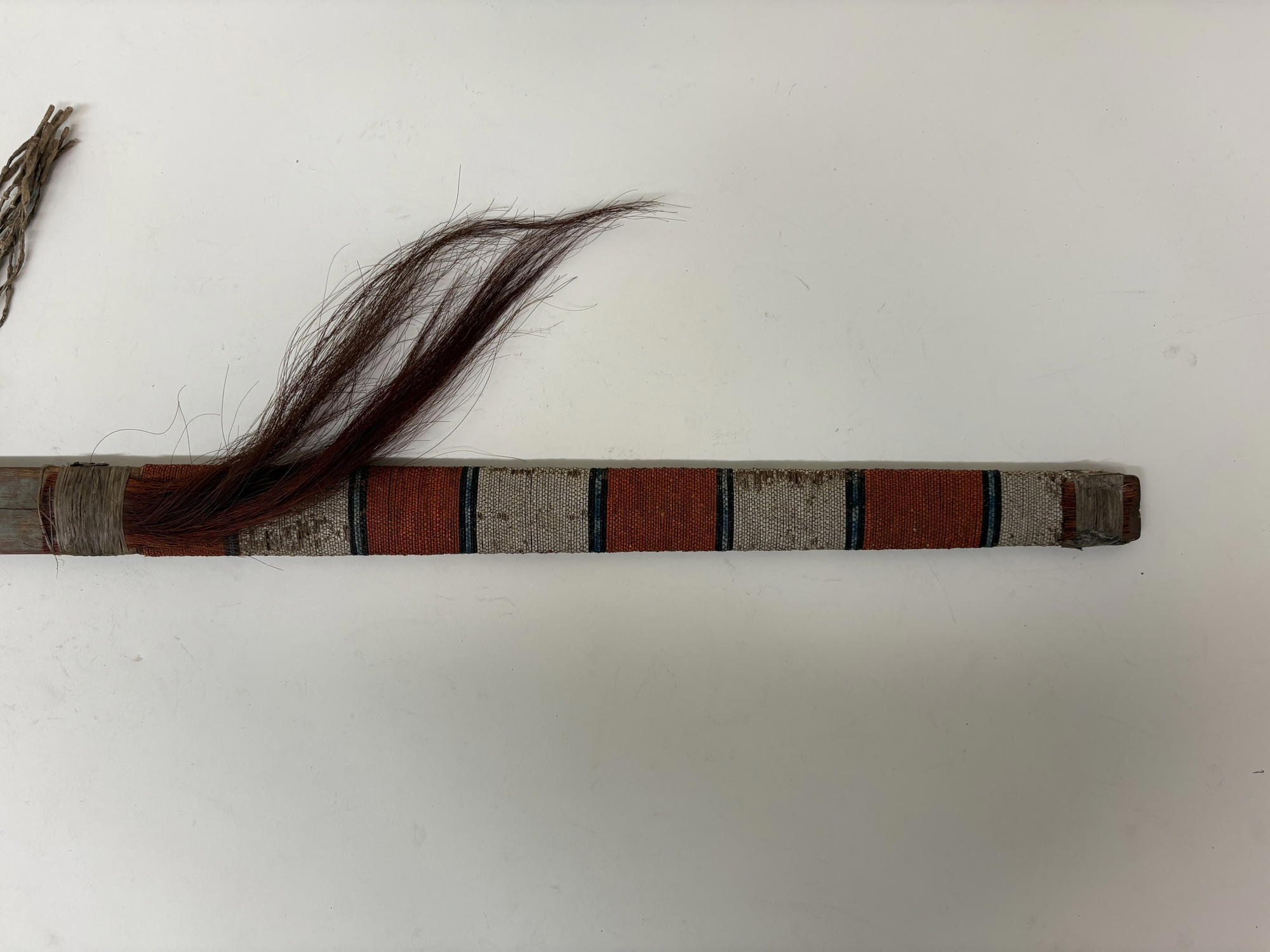 Sioux. Chief's Pipe Stem, early 19th century. Wood, pigment, porcupine quills, horsehair, bird scalps, buckskin, 33 3/4 x 2 3/4 x 3/4 in. (85.7 x 7 x 1.9 cm). Brooklyn Museum, Henry L. Batterman Fund and the Frank Sherman Benson Fund, 50.67.115. (Photo: Brooklyn Museum)