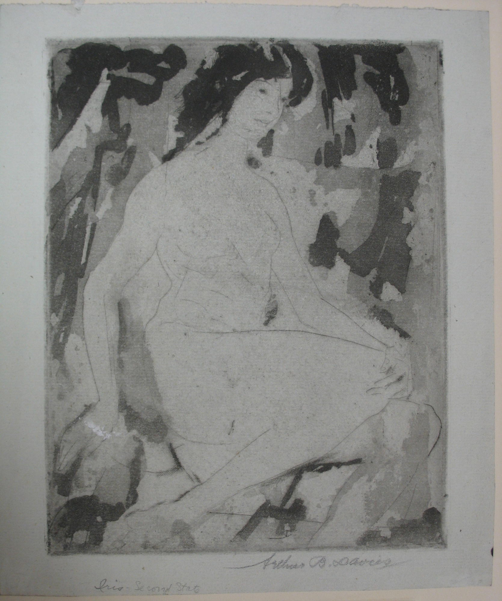 Arthur B. Davies (American, 1862–1928). Iris, 1922. Drypoint and aquatint on grey laid paper, Sheet: 10 3/16 x 8 9/16 in. (25.9 x 21.7 cm) Image: 8 13/16 x 6 7/8 in. (22.4 x 17.5 cm). Brooklyn Museum, Gift of Ferargil Galleries, 50.137.5. (Photo: Brooklyn Museum)