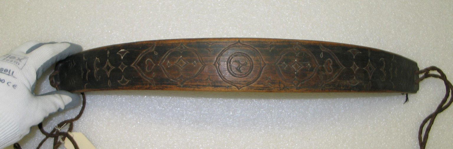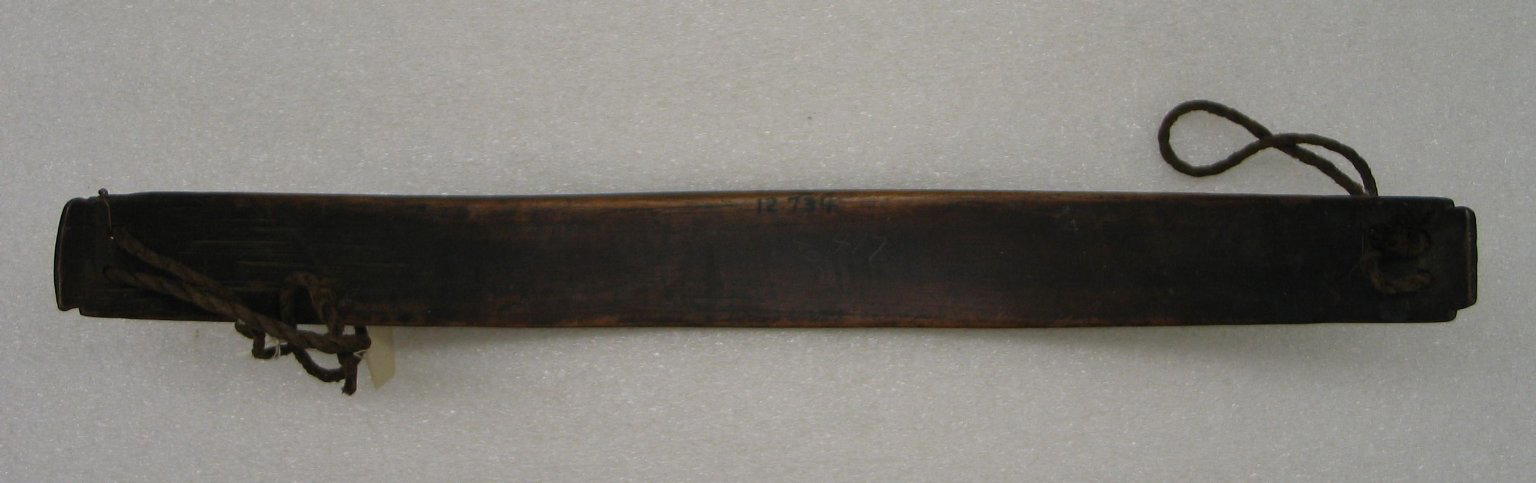 Ainu. Back Piece for Loom, Wood, 1 15/16 x 15 15/16 x 5 5/16 in. (5 x 40.5 x 13.5 cm). Brooklyn Museum, Gift of Herman Stutzer, 12.734. (Photo: North American Ainu Documentation Project, Yoshiburo Kotani, 1990-92)