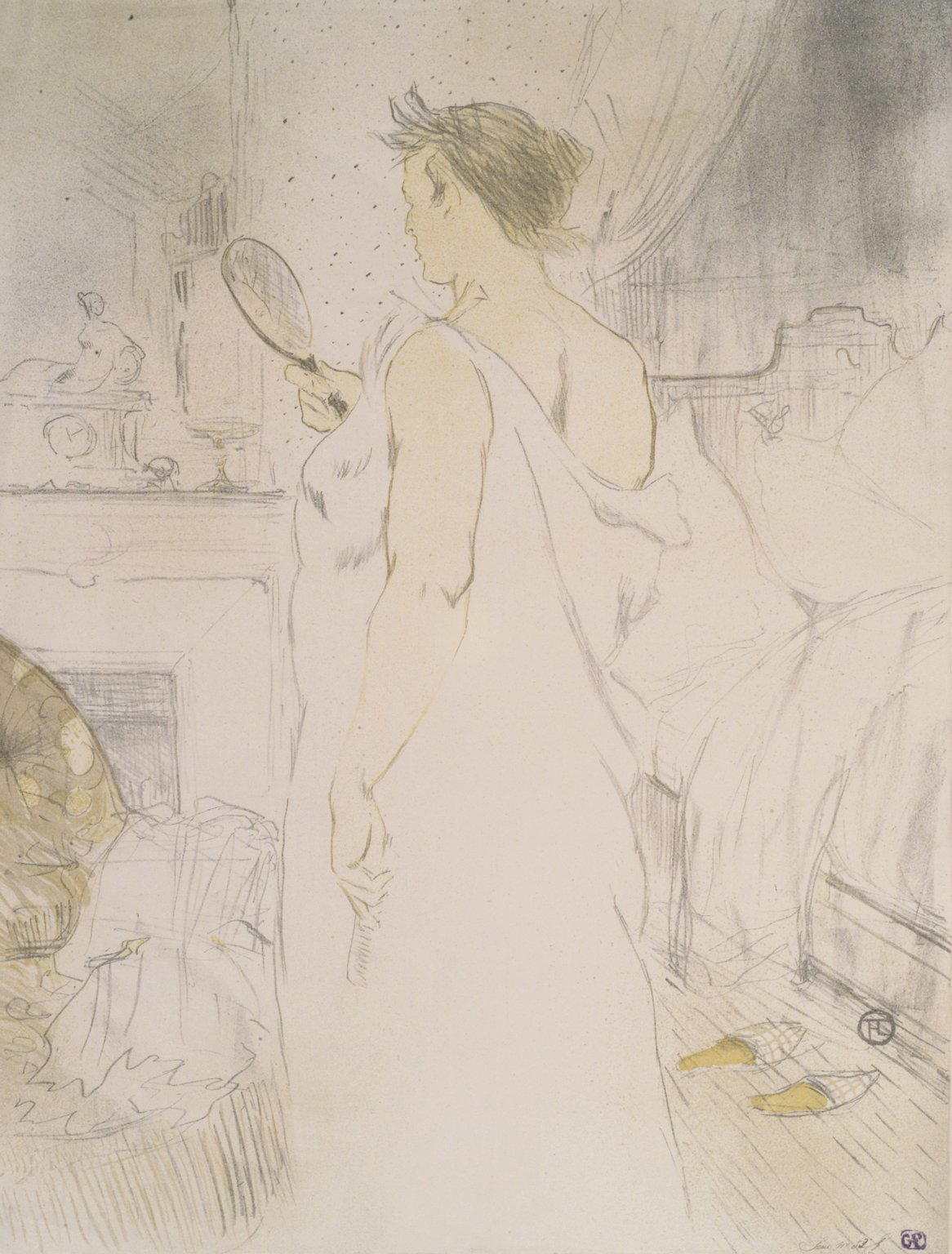 Henri de Toulouse-Lautrec (Albi, France, 1864–1901, Saint–André–du–Bois, France). Femme a Glace from Elles, 1896. Lithograph on wove paper, 20 9/16 x 15 3/4 in. (52.2 x 40 cm). Brooklyn Museum, Gift of Millicent Huttleston Rogers, 53.8.10. (Photo: Brooklyn Museum)
