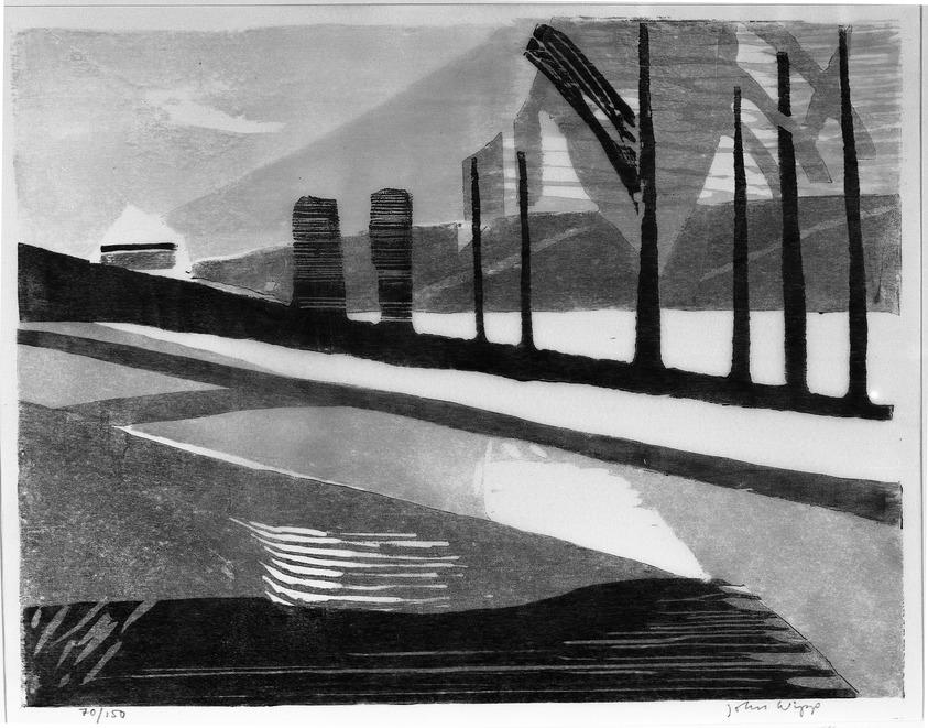 John Wipp (Swedish, 1927–2005). Street, 20th century. Linocut on paper, 10 3/4 x 14 in. (27.3 x 35.5 cm). Brooklyn Museum, A. Augustus Healy Fund, 53.168.16. (Photo: Brooklyn Museum)